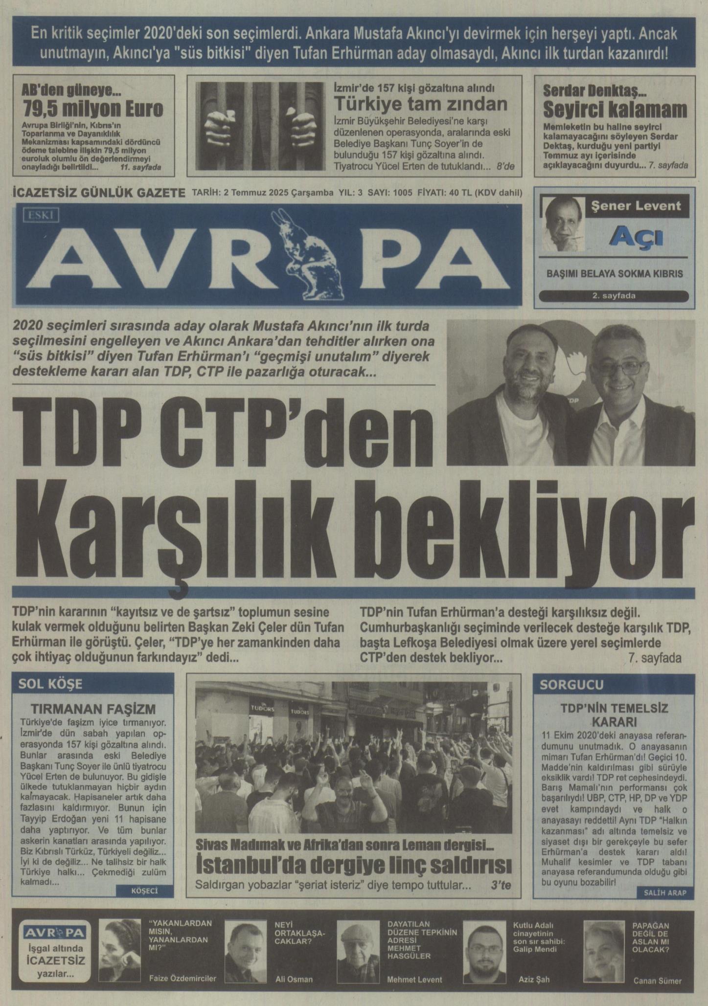 Anasayfa/KKTC/02 Temmuz 2025 Çarşamba gazete manşetleri KKTCManşet 02 Temmuz 2025 Çarşamba gazete manşetleri2 Temmuz 2025 2 Facebook X LinkedIn Tumblr Pinterest Reddit VKontakte Odnoklassniki Pocket 2 Temmuz 2025 2 Facebook X LinkedIn Tumblr Pinterest Reddit VKontakte Odnoklassniki Pocket Paylaş Facebook X LinkedIn Tumblr Pinterest Reddit VKontakte Odnoklassniki Pocket E-Posta ile paylaş Yazdır