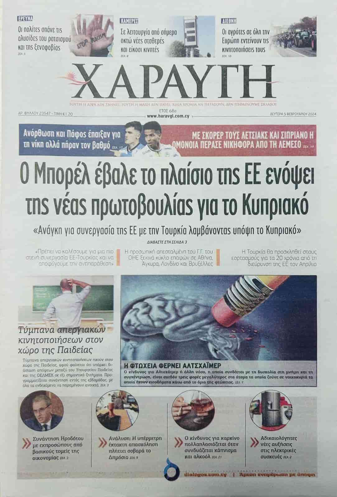 05 Şubat 2024 Güney Kıbrıs Gazete Manşetleri