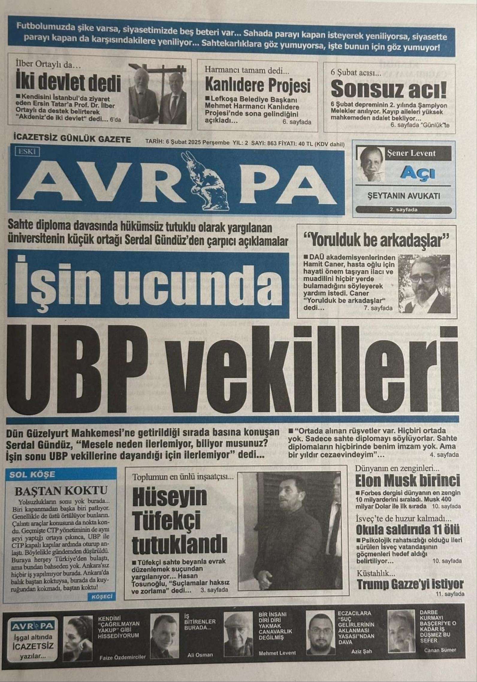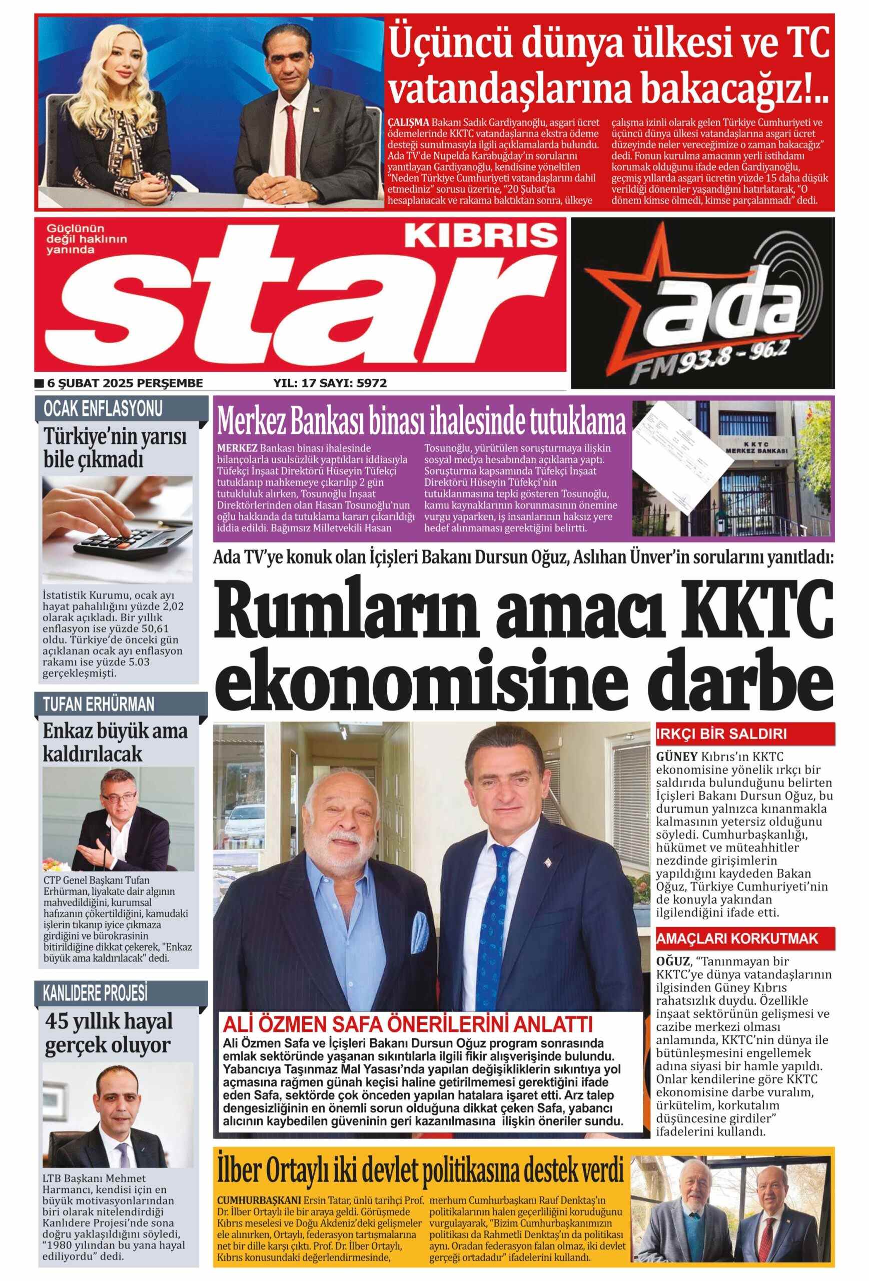 Anasayfa/KKTC/06 Şubat 2025 Perşembe gazete manşetleri KKTCKKTC GündemiManşet 06 Şubat 2025 Perşembe gazete manşetleri6 Şubat 2025 3 Facebook X LinkedIn Tumblr Pinterest Reddit VKontakte Odnoklassniki Pocket 6 Şubat 2025 3 Facebook X LinkedIn Tumblr Pinterest Reddit VKontakte Odnoklassniki Pocket Paylaş Facebook X LinkedIn Tumblr Pinterest Reddit VKontakte Odnoklassniki Pocket E-Posta ile paylaş Yazdır