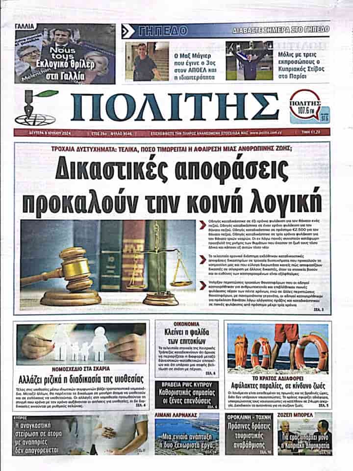 08 Temmuz 2024 Pazartesi Güney Kıbrıs Gazete Manşetleri