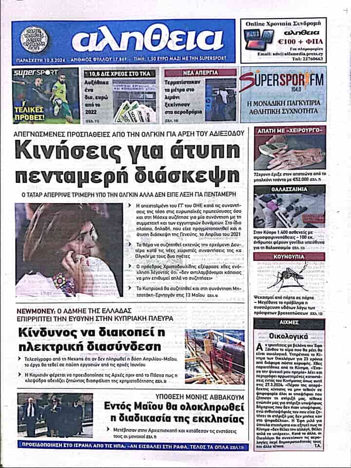 10 Mayıs 2024 Güney Kıbrıs Gazete Manşetleri