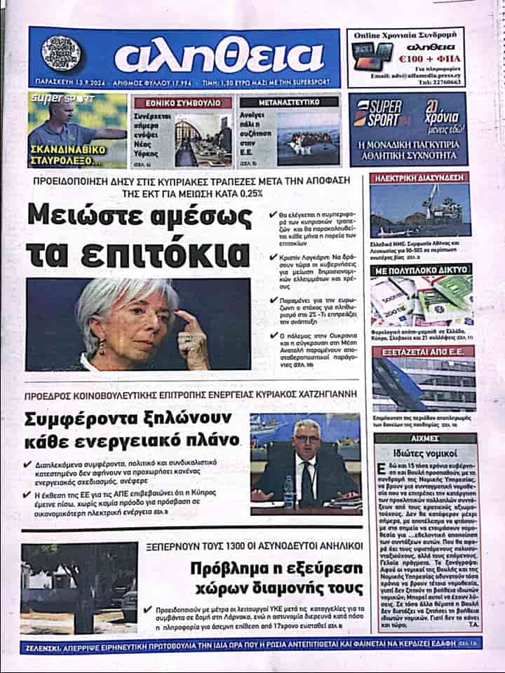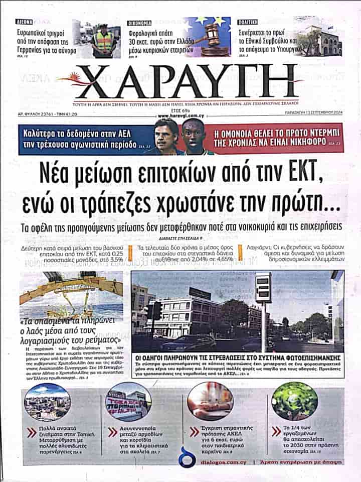 13 Eylül 2024 Güney Kıbrıs Gazete Manşetleri