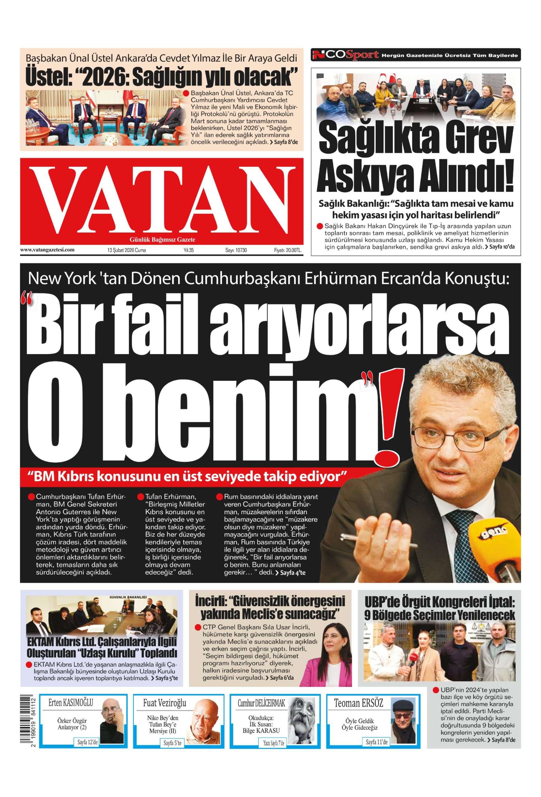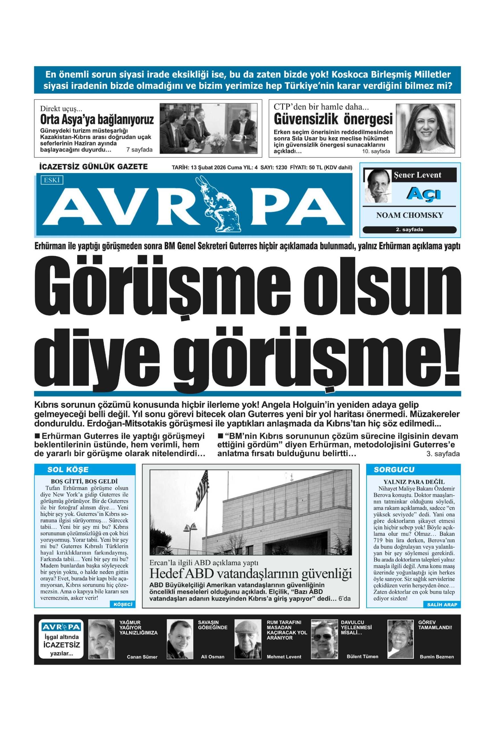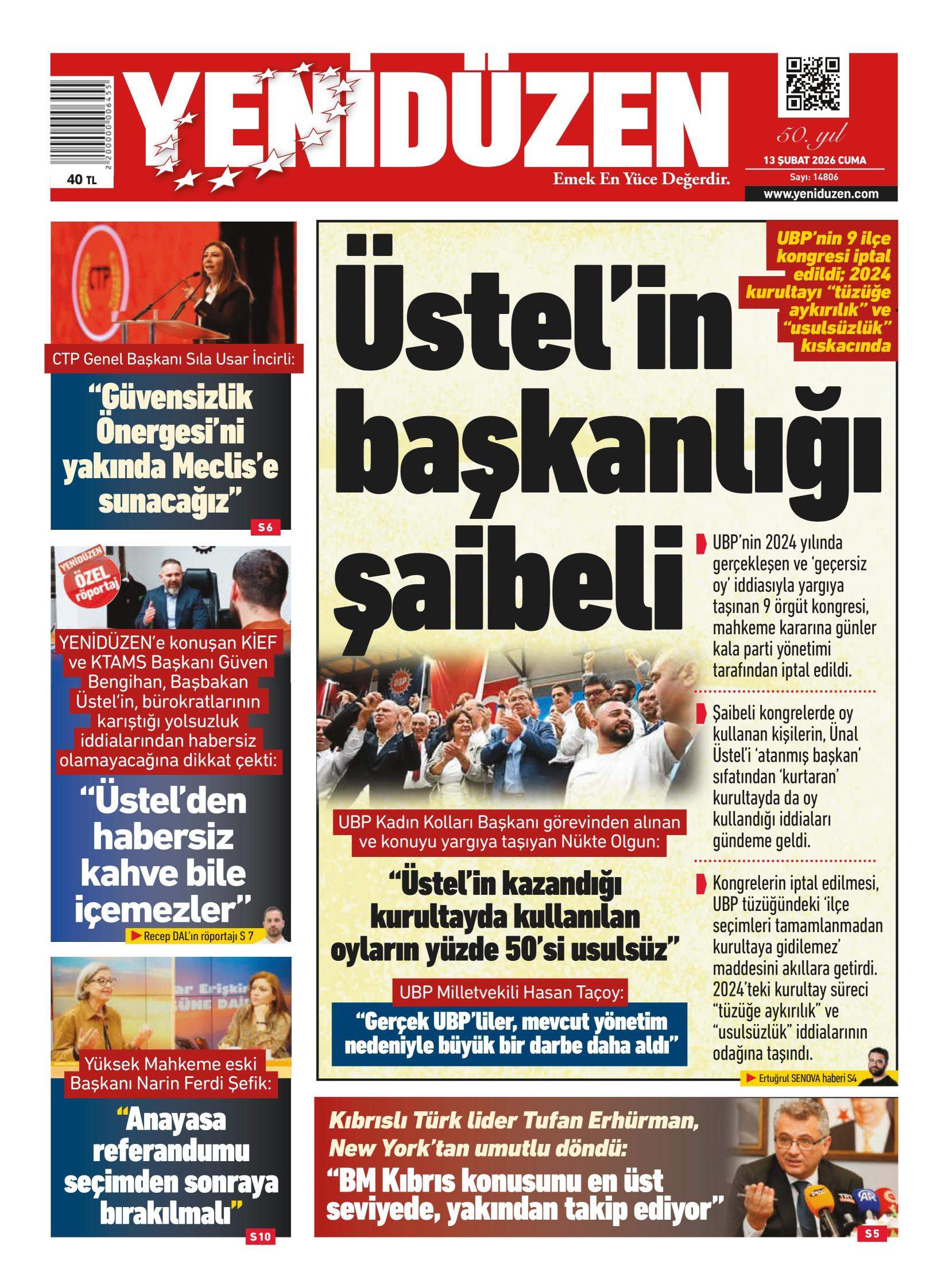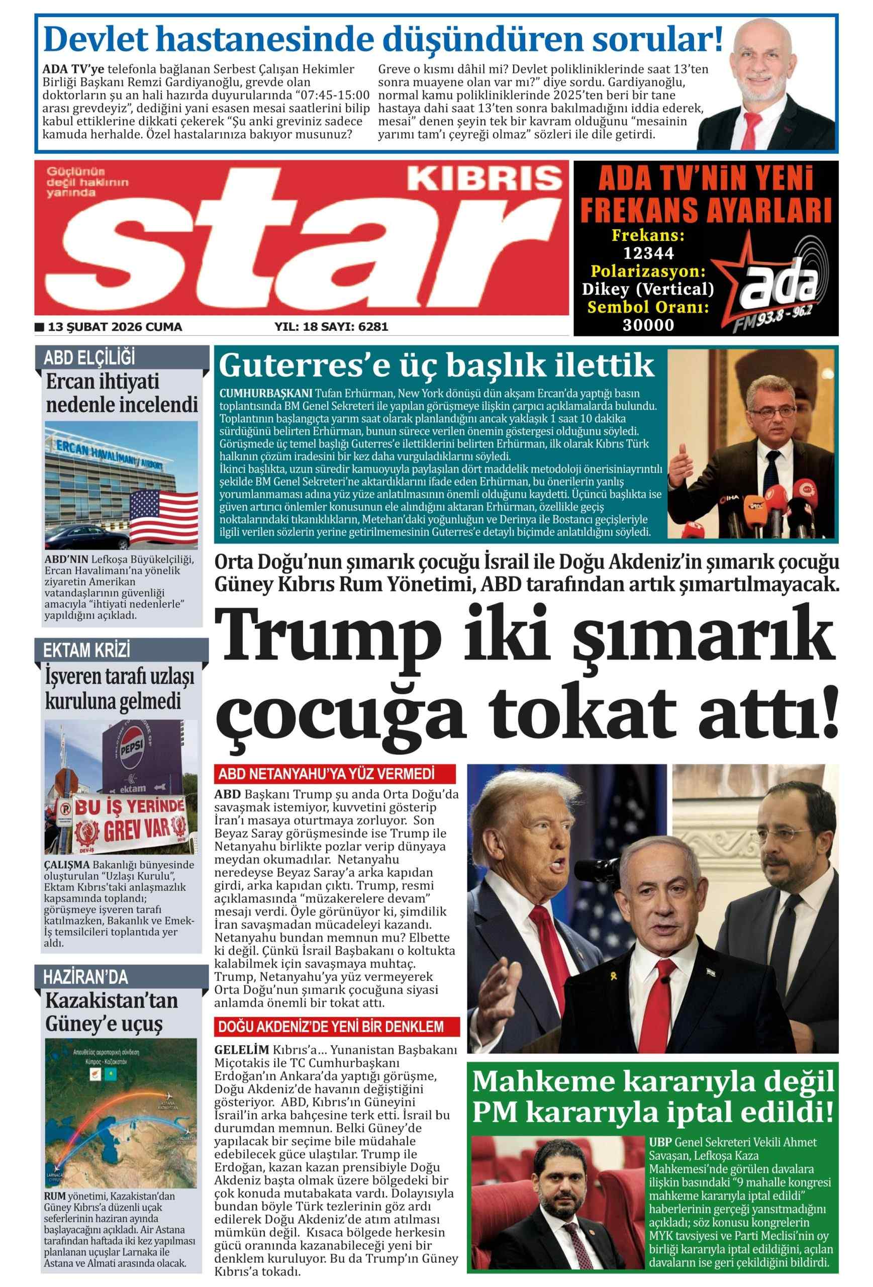 Anasayfa/KKTC/13 Şubat 2026 Cuma gazete manşetleri KKTCKKTC GündemiManşet 13 Şubat 2026 Cuma gazete manşetleri4 gün önce 2 Facebook X LinkedIn Tumblr Pinterest Reddit VKontakte Odnoklassniki Pocket 4 gün önce 2 Facebook X LinkedIn Tumblr Pinterest Reddit VKontakte Odnoklassniki Pocket Paylaş Facebook X LinkedIn Tumblr Pinterest Reddit VKontakte Odnoklassniki Pocket E-Posta ile paylaş Yazdır
