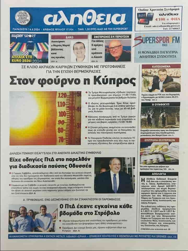14 Haziran 2024 Güney Kıbrıs Gazete Manşetleri