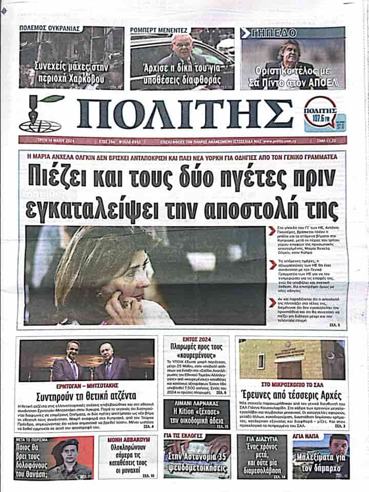 14 Mayıs 2024 Güney Kıbrıs Gazete Manşetleri
