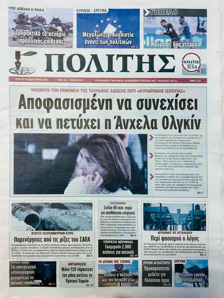 14 Şubat 2024 Güney Kıbrıs Gazete Manşetleri