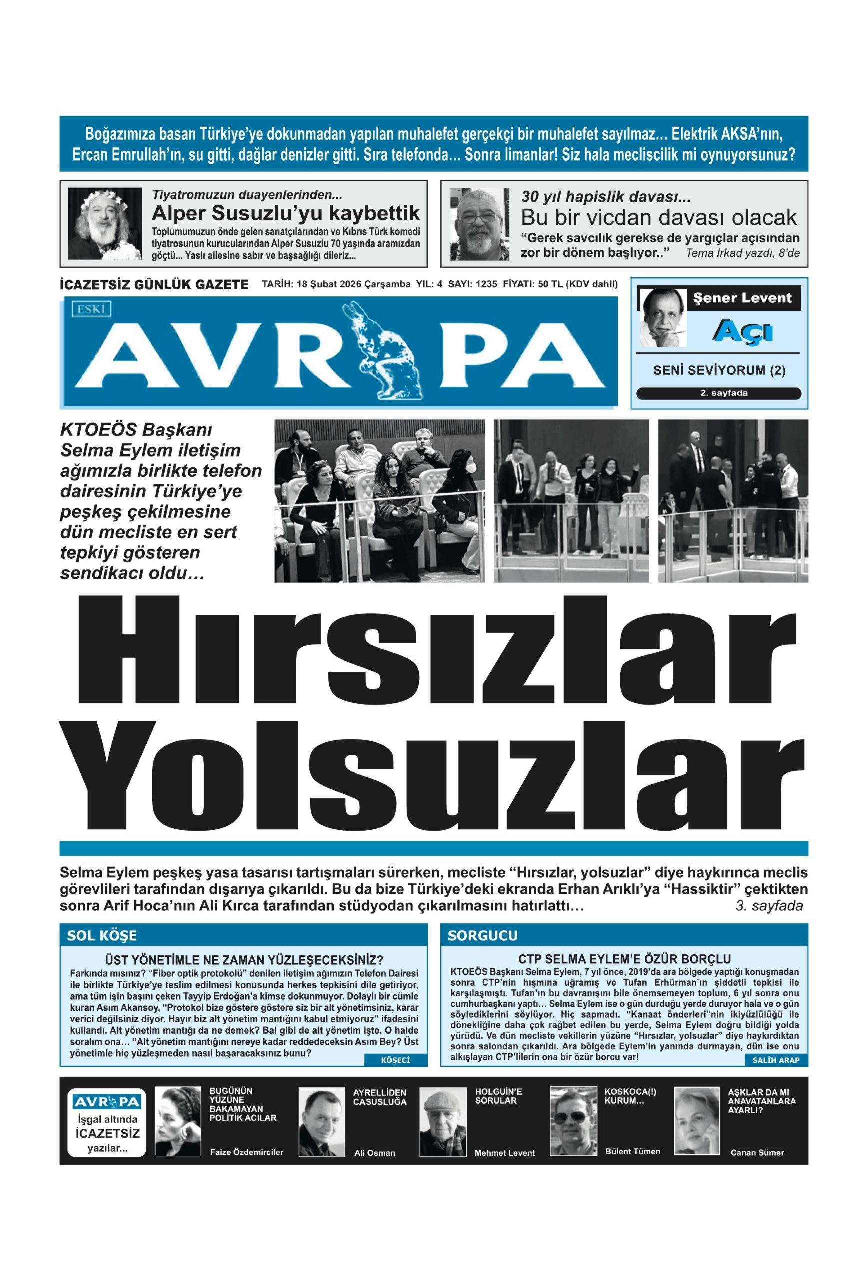 Anasayfa/KKTC/18 Şubat 2026 Çarşamba gazete manşetleri KKTCKKTC GündemiManşet 18 Şubat 2026 Çarşamba gazete manşetleri18 Şubat 2026 10 Facebook X LinkedIn Tumblr Pinterest Reddit VKontakte Odnoklassniki Pocket 18 Şubat 2026 10 Facebook X LinkedIn Tumblr Pinterest Reddit VKontakte Odnoklassniki Pocket Paylaş Facebook X LinkedIn Tumblr Pinterest Reddit VKontakte Odnoklassniki Pocket E-Posta ile paylaş Yazdır