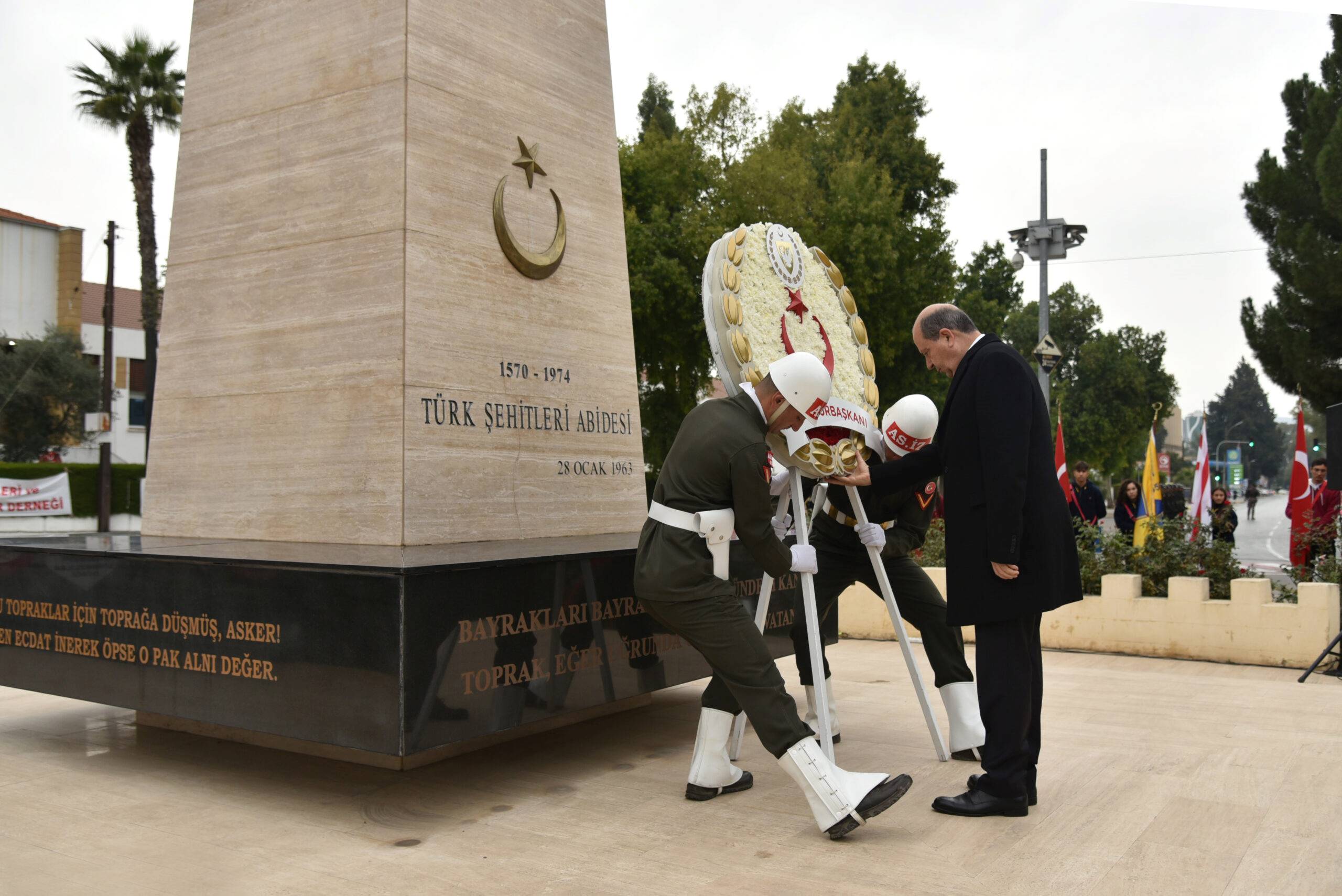 İlk tören, Lefkoşa Şehitler Abidesi önünde yapılacak. Tören saat 09.30’da çelenklerin protokol sırasına göre anıta sunulmasıyla başlayacak. Saygı Duruşu, saygı atışı ve İstiklal Marşı ile bayrakların göndere çekilmesinin ardından Anıt Özel Defteri Cumhurbaşkanı Ersin Tatar ve Kıbrıs Türk Barış Kuvvetleri Komutanı Tümgeneral Sebahattin Kılınç tarafından imzalanacak.