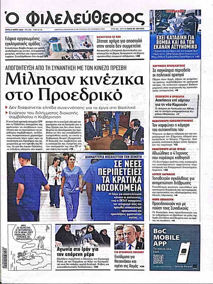 21 Mayıs 2024 Güney Kıbrıs Gazete Manşetleri