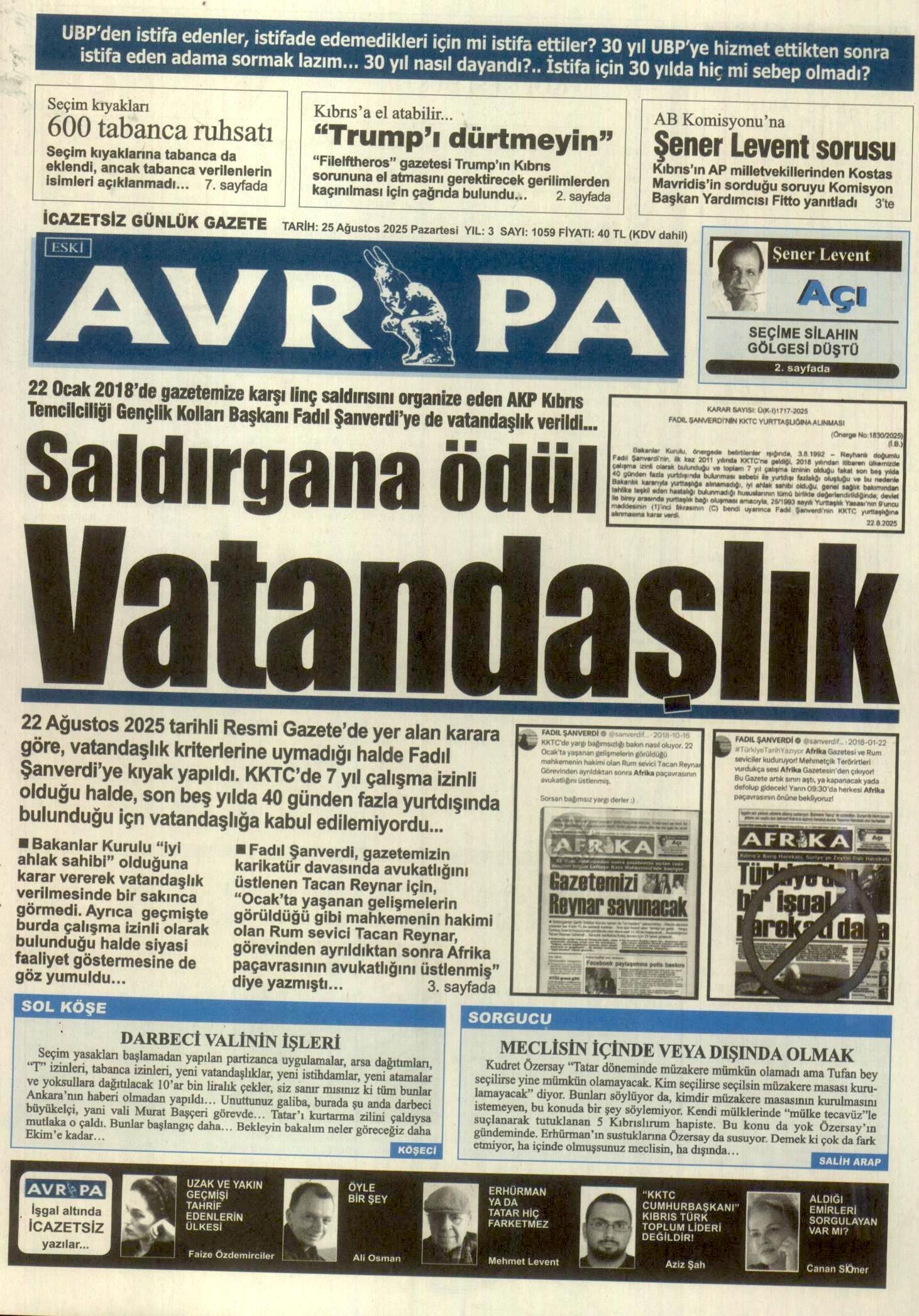 Anasayfa/KKTC/25 Ağustos 2025 Pazartesi gazete manşetleri KKTCManşet 25 Ağustos 2025 Pazartesi gazete manşetleri25 Ağustos 2025 3 Facebook X LinkedIn Tumblr Pinterest Reddit VKontakte Odnoklassniki Pocket 25 Ağustos 2025 3 Facebook X LinkedIn Tumblr Pinterest Reddit VKontakte Odnoklassniki Pocket Paylaş Facebook X LinkedIn Tumblr Pinterest Reddit VKontakte Odnoklassniki Pocket E-Posta ile paylaş Yazdır