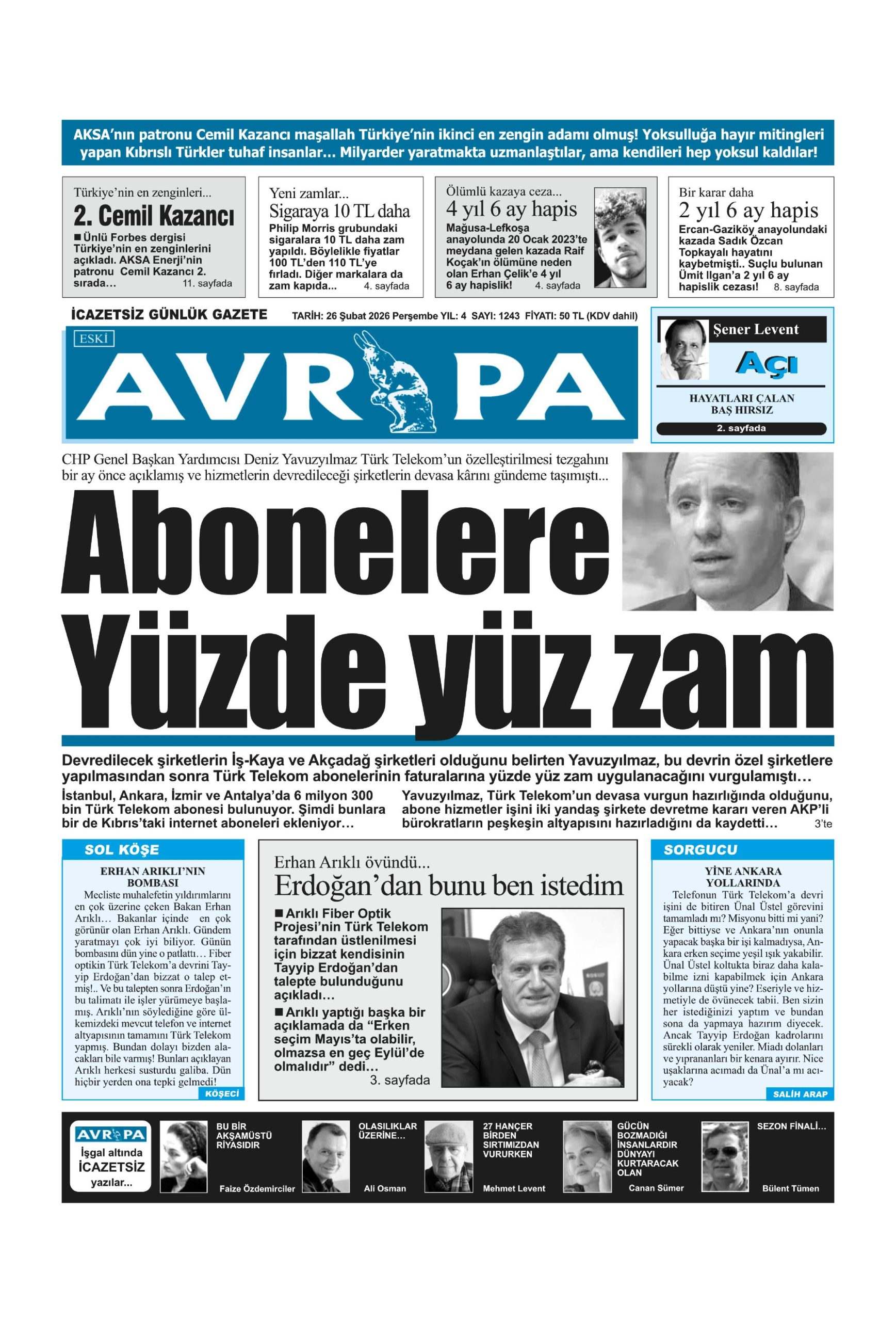 Anasayfa/KKTC/26 Şubat 2026 Perşembe gazete manşetleri KKTCManşet 26 Şubat 2026 Perşembe gazete manşetleri26 Şubat 2026 3 Facebook X LinkedIn Tumblr Pinterest Reddit VKontakte Odnoklassniki Pocket 26 Şubat 2026 3 Facebook X LinkedIn Tumblr Pinterest Reddit VKontakte Odnoklassniki Pocket Paylaş Facebook X LinkedIn Tumblr Pinterest Reddit VKontakte Odnoklassniki Pocket E-Posta ile paylaş Yazdır