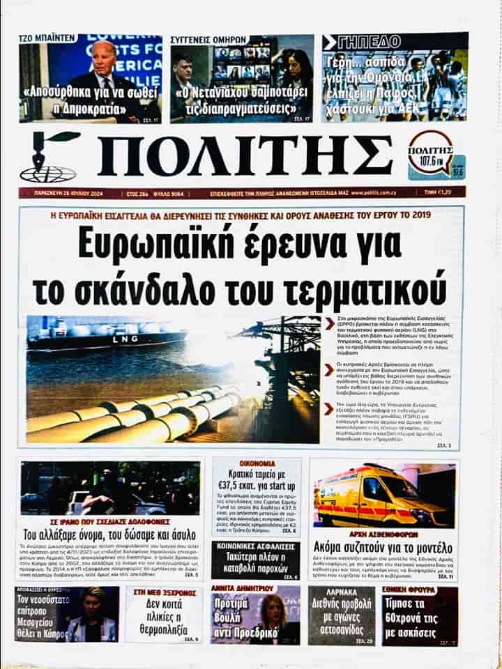 POLİTİS manşetten aktardığı haberinde “Terminal skandalına ilişkin Avrupa soruşturması” başlığını kullanarak Avrupa Başsavcılığı’nın, 2019 yılında projenin ihale edilmesine ilişkin şart ve koşulları araştıracağına değiniyor.