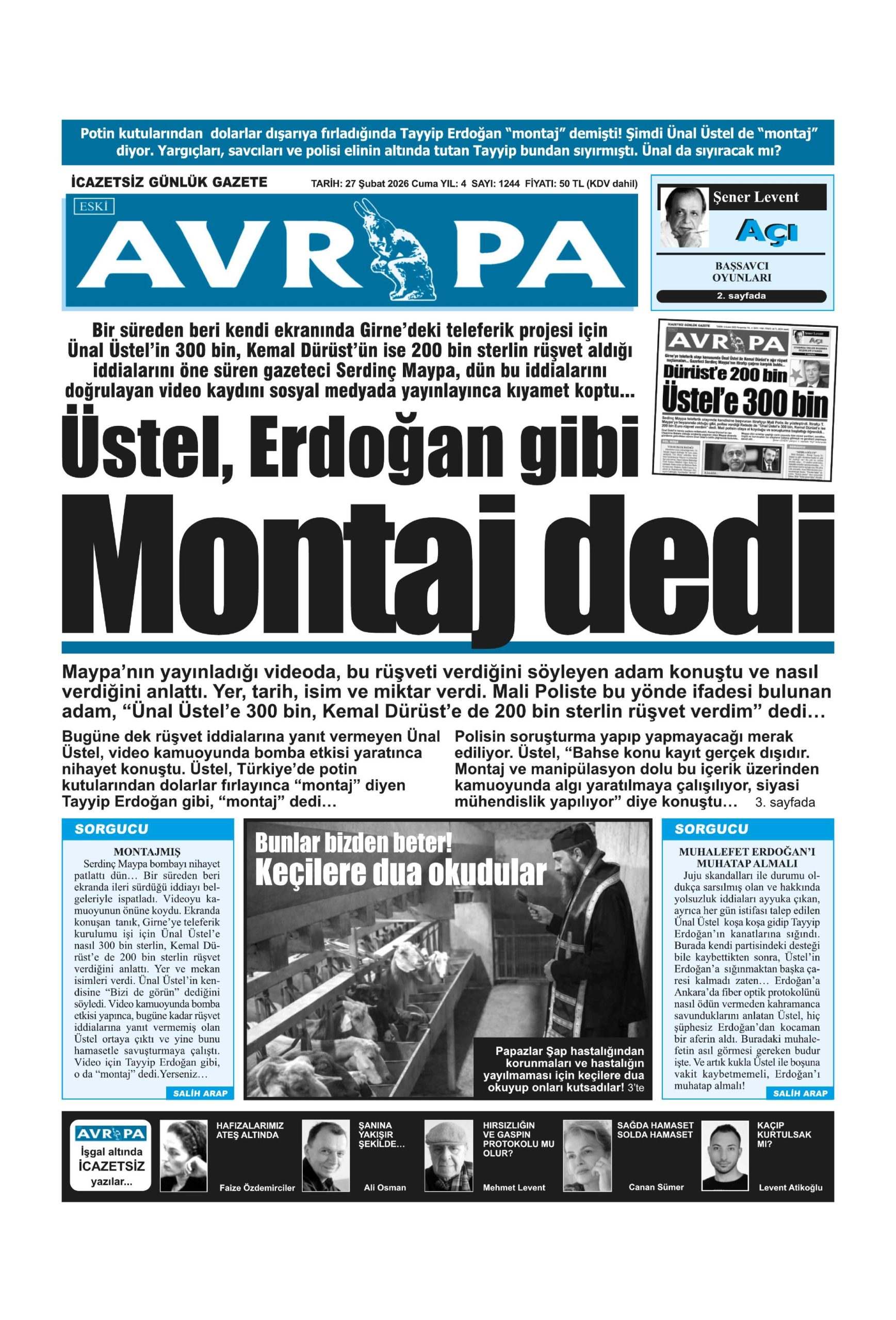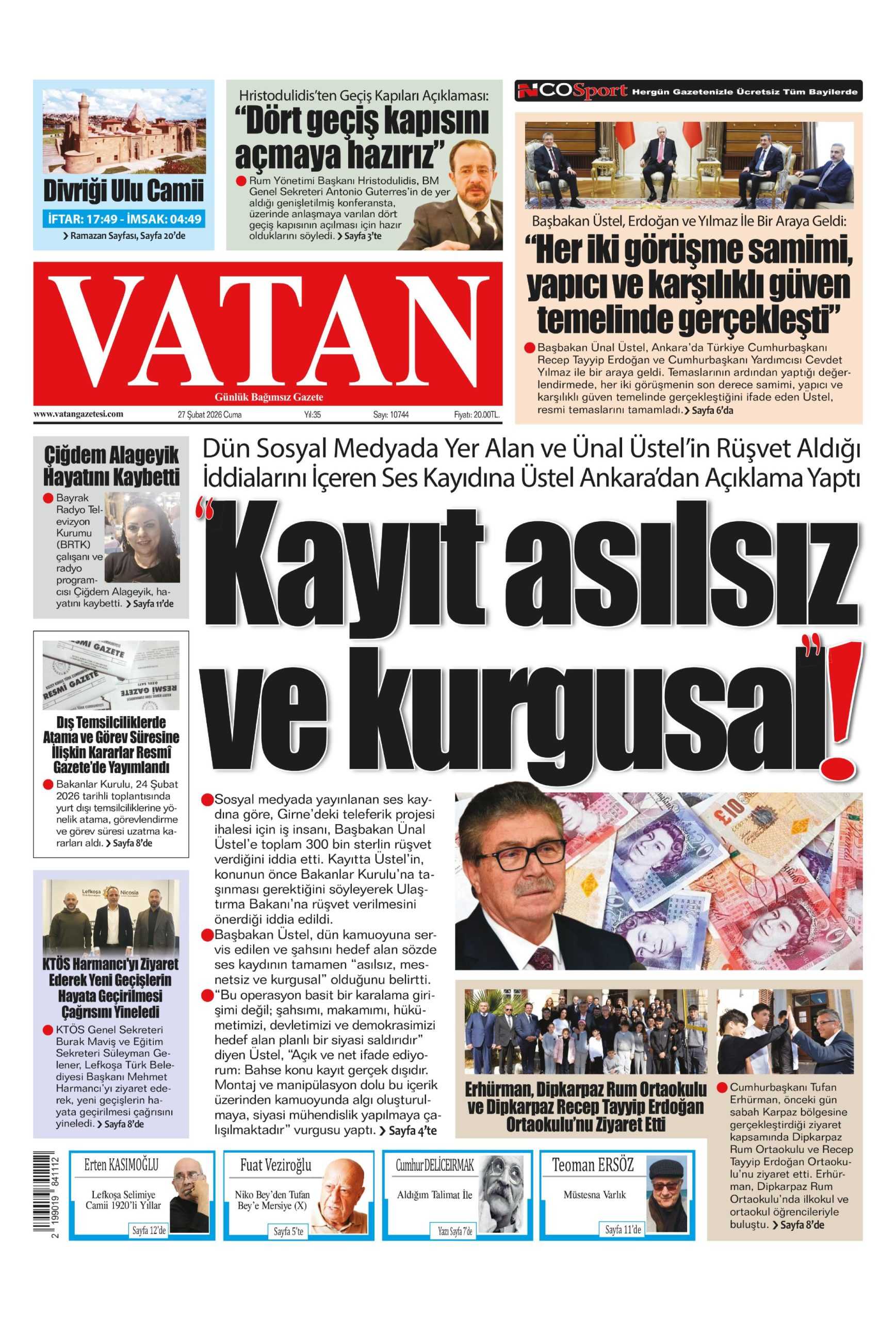 Anasayfa/Güney Kıbrıs/27 Şubat 2026 Cuma gazete manşetleri Güney KıbrısKKTCManşet 27 Şubat 2026 Cuma gazete manşetleri27 Şubat 2026 5 Facebook X LinkedIn Tumblr Pinterest Reddit VKontakte Odnoklassniki Pocket 27 Şubat 2026 5 Facebook X LinkedIn Tumblr Pinterest Reddit VKontakte Odnoklassniki Pocket Paylaş Facebook X LinkedIn Tumblr Pinterest Reddit VKontakte Odnoklassniki Pocket E-Posta ile paylaş Yazdır