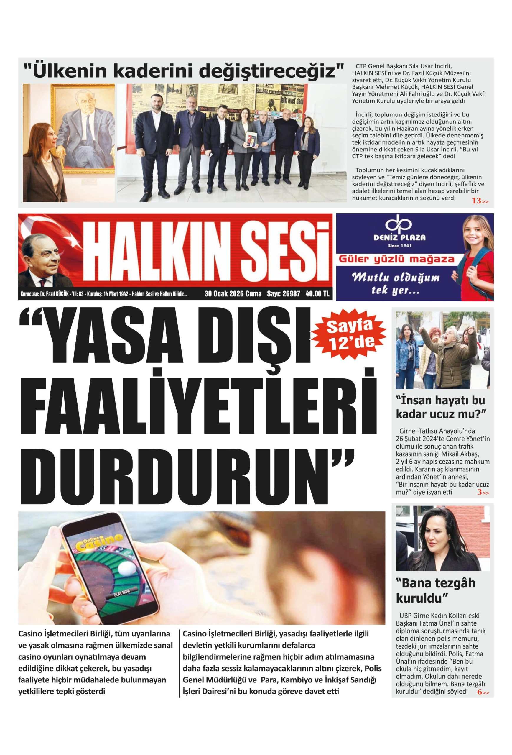Anasayfa/KKTC/30 Ocak 2026 Cuma gazete manşetleri KKTCKKTC GündemiManşet 30 Ocak 2026 Cuma gazete manşetleri3 hafta önce 7 Facebook X LinkedIn Tumblr Pinterest Reddit VKontakte Odnoklassniki Pocket 3 hafta önce 7 Facebook X LinkedIn Tumblr Pinterest Reddit VKontakte Odnoklassniki Pocket Paylaş Facebook X LinkedIn Tumblr Pinterest Reddit VKontakte Odnoklassniki Pocket E-Posta ile paylaş Yazdır