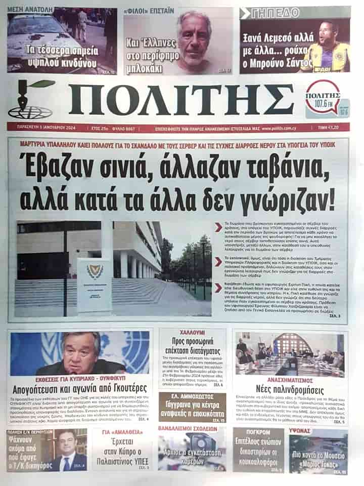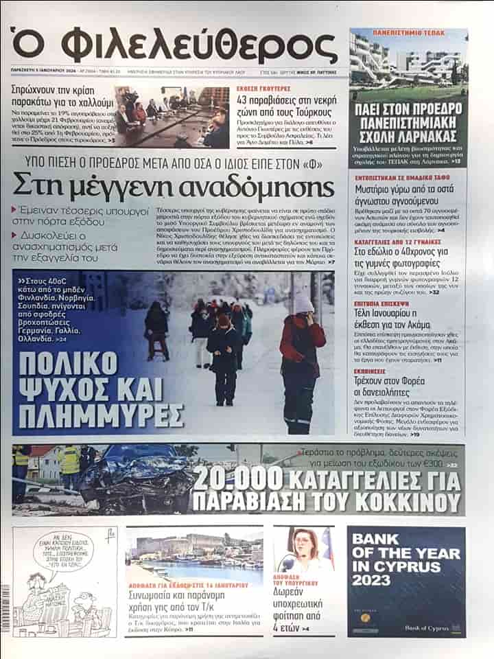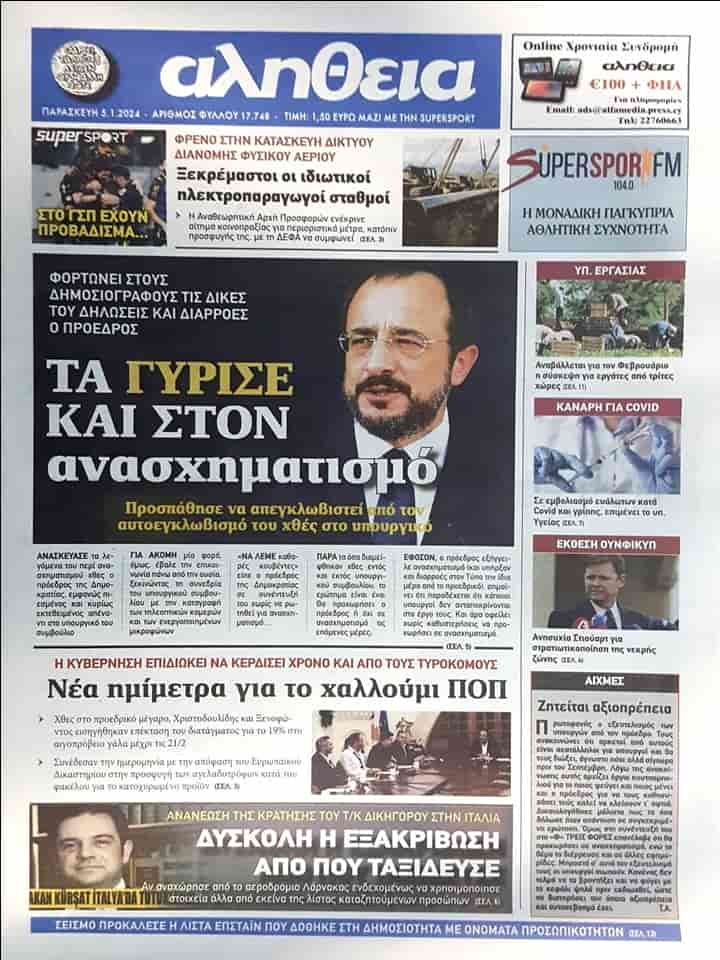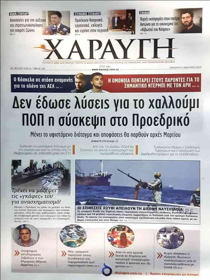 5 Ocak 2024 Güney Kıbrıs Gazete Manşetleri