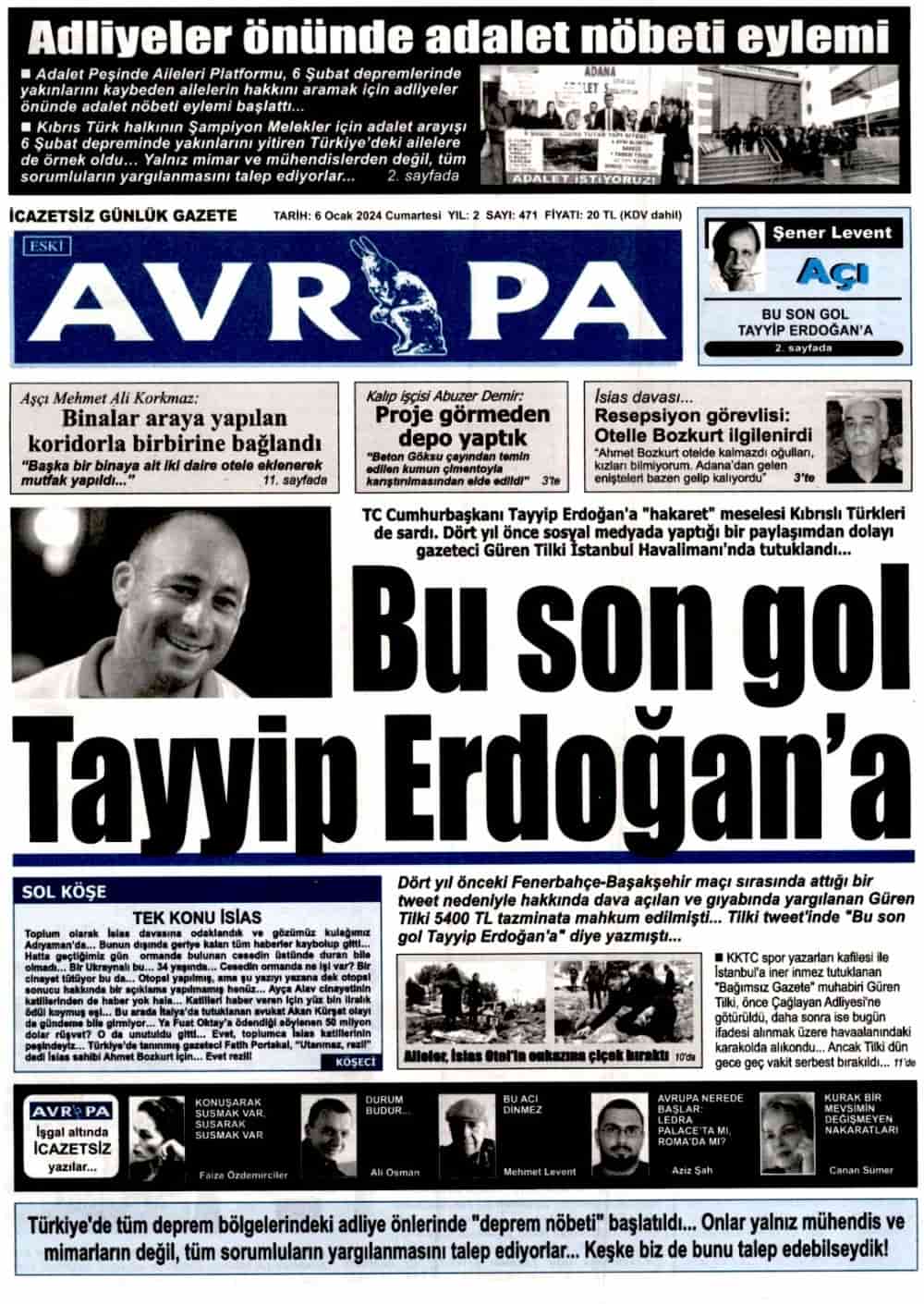 Anasayfa/Manşet/6 Ocak 2024 KKTC Gazete Manşetleri KKTCKKTC GündemiManşet 6 Ocak 2024 KKTC Gazete Manşetleri6 Ocak 2024 76 Facebook X LinkedIn Tumblr Pinterest Reddit VKontakte Odnoklassniki Pocket 6 Ocak 2024 76 Facebook X LinkedIn Tumblr Pinterest Reddit VKontakte Odnoklassniki Pocket Paylaş Facebook X LinkedIn Tumblr Pinterest Reddit VKontakte Odnoklassniki Pocket E-Posta ile paylaş Yazdır