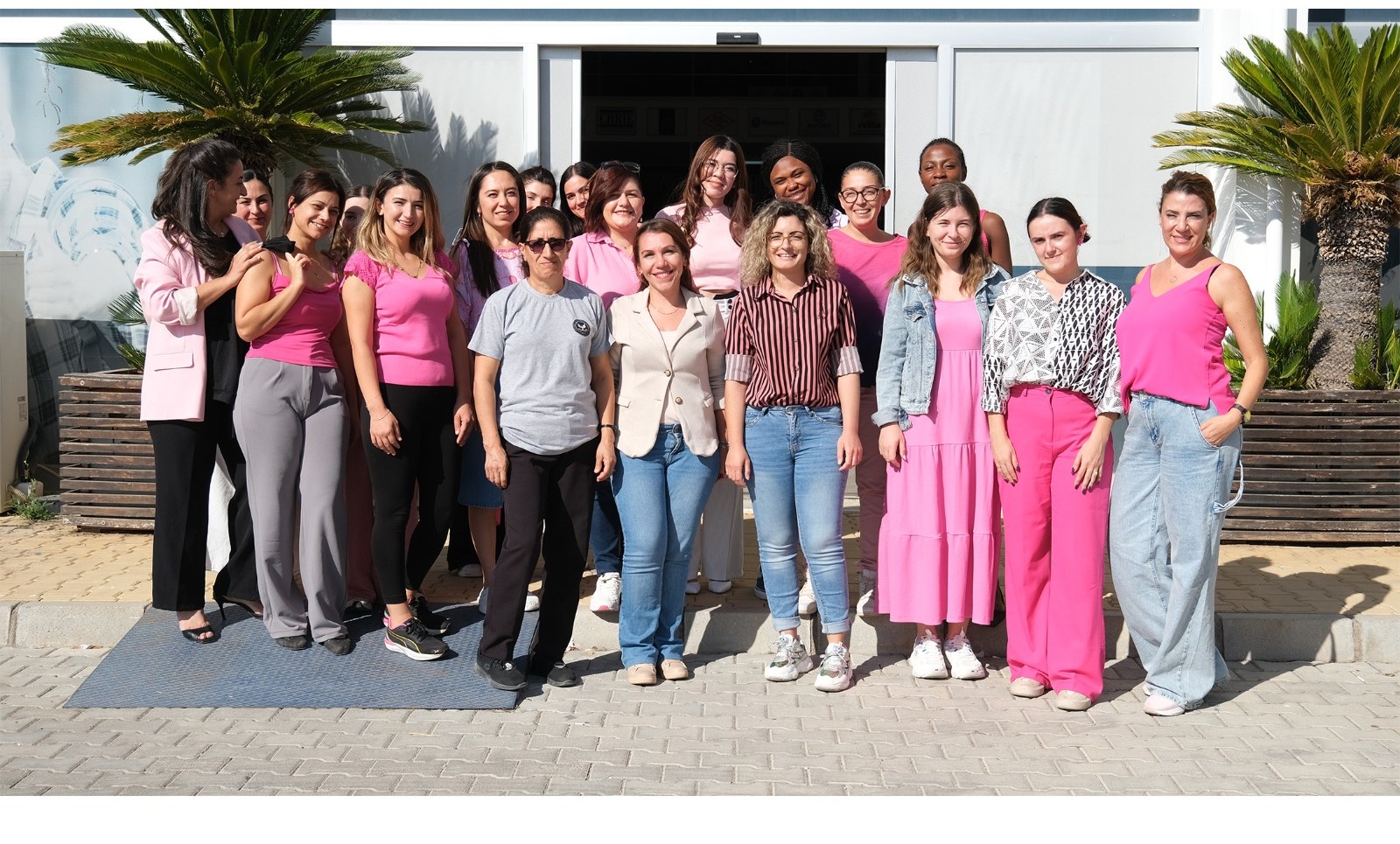 Etkinlikte katılımcılar, pembe renkler giyinerek farkındalık mesajı verdi.