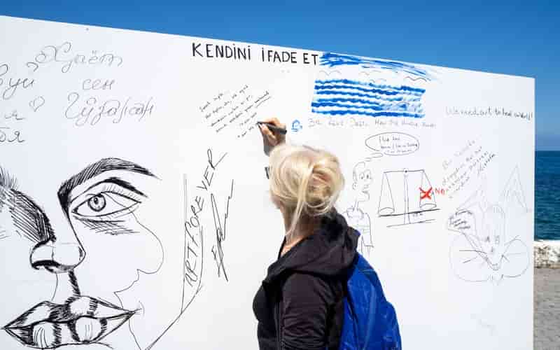Meydana yerleştirilen panolara vatandaşların “Bir sanatçı olsaydım …………………..” cümlesindeki boşluğu kendi ifade biçimlerini kullanarak doldurmalarına imkan sağlandı.