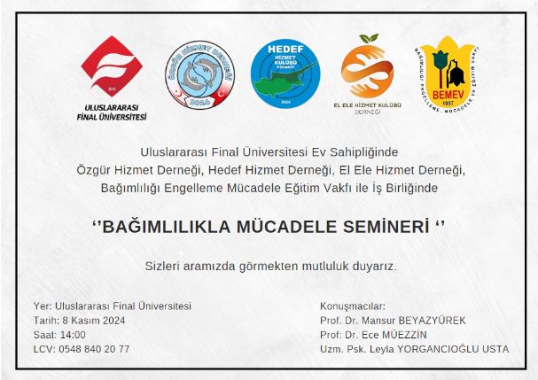 Prof. Dr. Mansur Beyazyürek, Prof. Dr. Ece Müezzin ve Uz. Psikolog Leyla Yorgancıoğlu Usta konuşmacı olarak katılacağı seminer, saat 14.00’te Uluslararası Final Üniversitesi Konferans Salonunda yapılacak.