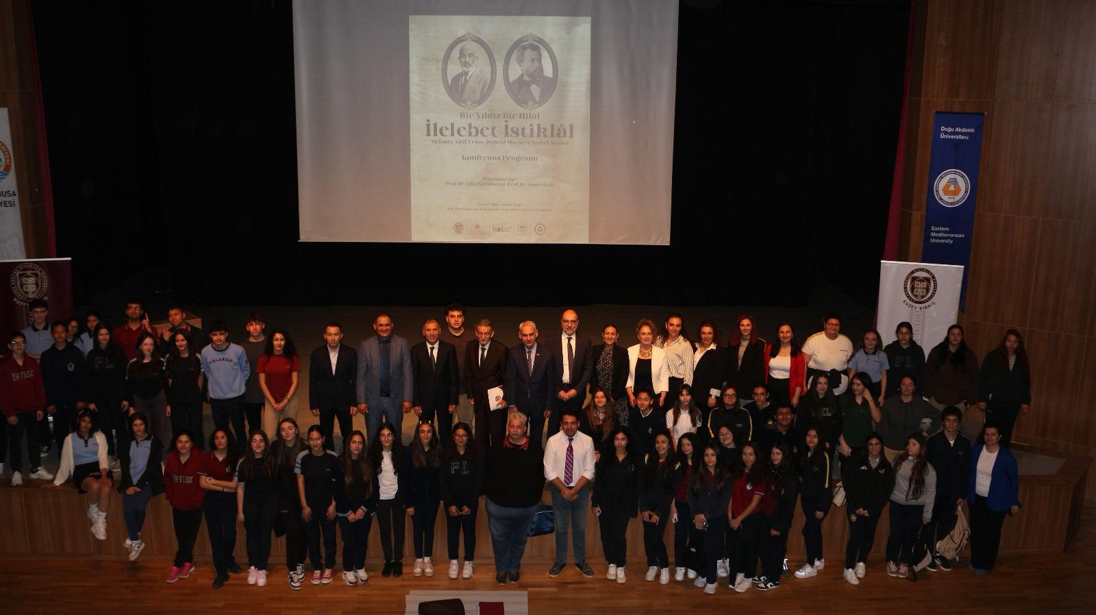 Lefkoşa Eğitim Müşaviri Mithat Tekçam ise konuşmasında, İstiklâl Marşı’nın bu yıl “Bir Yıldız Bir Hilâl-İlelebet İstiklâl” temasıyla Türkiye ve Kuzey Kıbrıs Türk Cumhuriyeti’nde eş zamanlı olarak anılmasından duyduğu mutluluğu ifade etti. Ayrıca, etkinliğin ülke genelinde düzenlenen yarışmalar ve kompozisyon çalışmalarıyla desteklendiğini belirterek katılımcılara teşekkürlerini iletti.