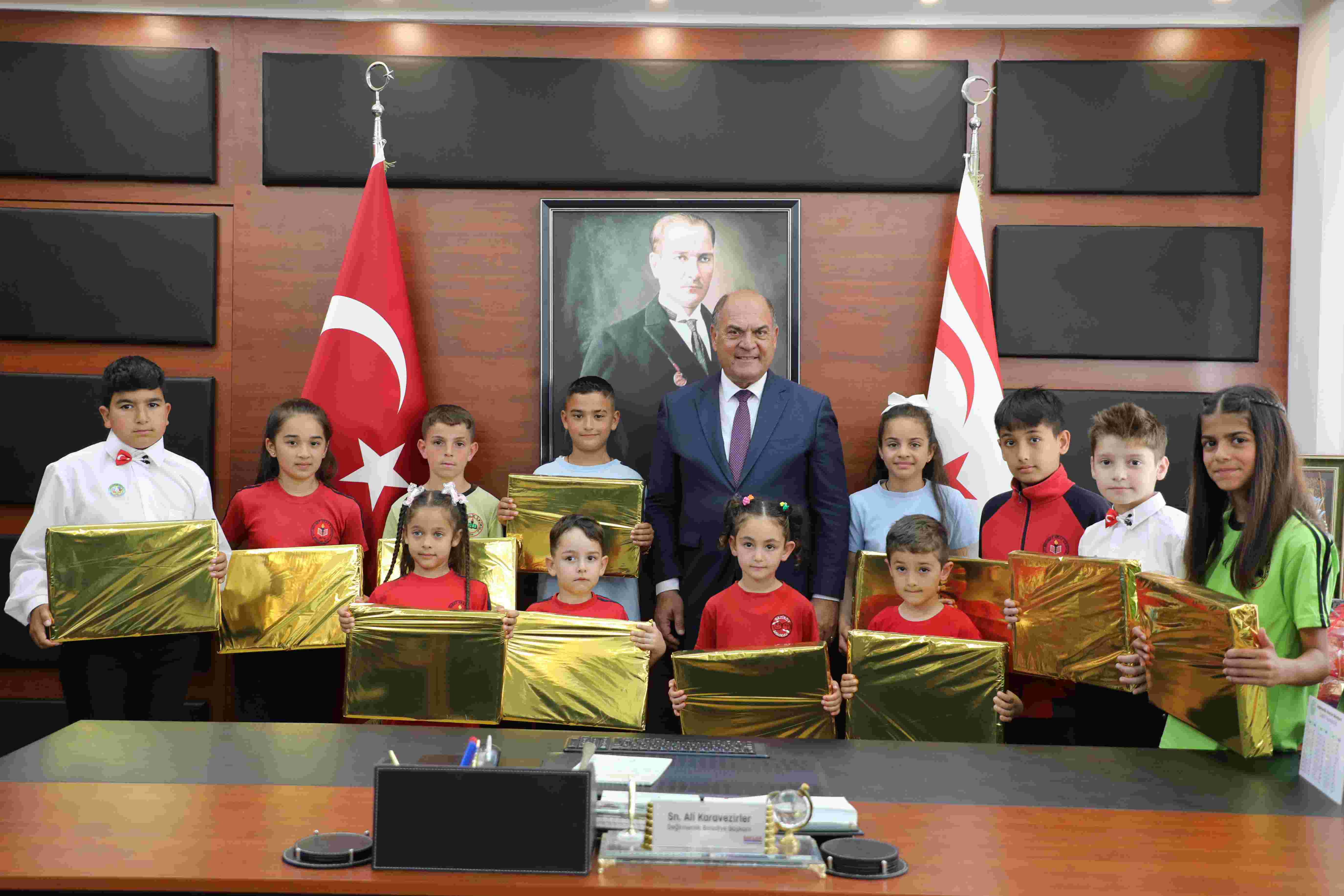 23 Nisan Ulusal Egemenlik ve Çocuk Bayramı kutlamaları çerçevesinde bölge okullarından çocuklar ve okul müdürleri Değirmenlik Akıncılar Belediye Başkanı Ali Karavezirler’i ziyaret etti.