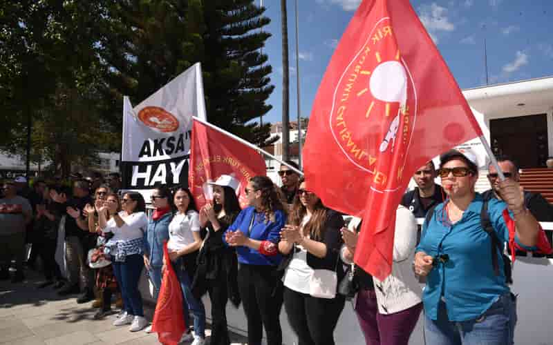 Kıbrıs Türk Elektrik Çalışanları Sendikası (El-Sen), Meclis Genel Kurulu’nda bugün görüşülmesine devam edilen Kamu İhale (Değişiklik) Yasa Tasarısı’nı protesto için Meclis önünde eylem yapıyor.