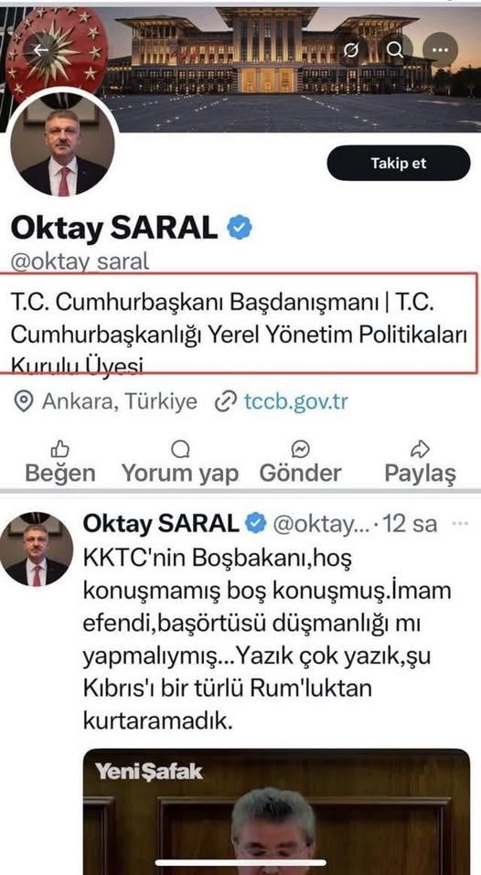 Türkiye Cumhurbaşkanı Recep Tayyip Erdoğan’ın Başdanışmanı Oktay Saral’ın, KKTC Başbakanı Ünal Üstel’e yönelik sosyal medya üzerinden sarf ettiği ifadeler, yalnızca siyasetin sınırlarını aşmakla kalmadı; Kıbrıs Türk halkının onuruna da doğrudan bir saldırı olarak yorumlandı.