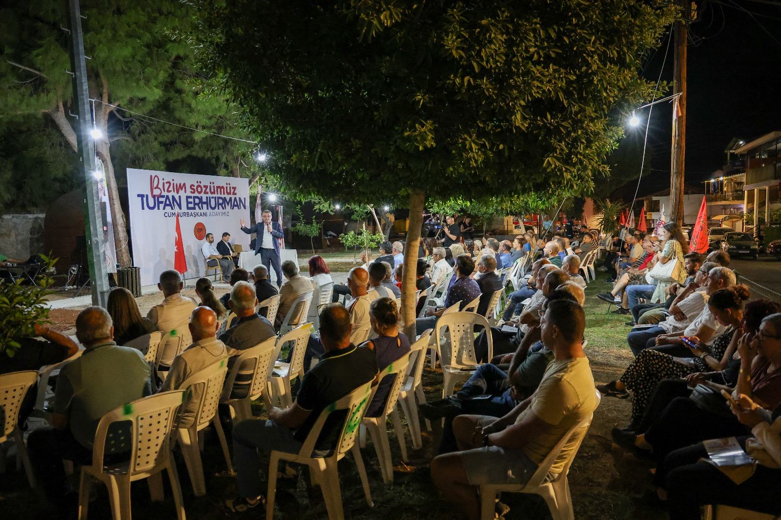 Etkinlikte konuşan Cumhurbaşkanı adayı Tufan Erhürman, Cumhurbaşkanının toplumun bütünlüğünü koruması ve temsil etmesi gerektiği belirtti. Ülkenin dört bir yanını karış karış dolaştıklarını ifade eden Erhürman, “Yeşilırmak’tan Dipkarpaz’a kadar karış karış dolaşıyoruz. YDP’ye, DP’ye, UBP’ye ya da başka partilere oy vermiş olsun — hiç fark etmez; biz bir bütün olacağız” dedi. Ülkenin, halkın tamamını temsil edeceklerini vurgulayan Erhürman, “Tarafsız olacağız” ifadelerini kullandı. Cumhurbaşkanı adayı Tufan Erhürman, “Cumhurbaşkanlığı, 19 Ekim’den sonra tüm toplumla kucaklaşacak. Her gün çoğalarak yürüyoruz. Seçimin sonucuna dair birtakım tahminler geliyor. Karşı taraf bütün tuşlara birden basmaya başladıysa, bize saldırmaya başladıysa, gerçek anket odur. Bunu, geride kaldıklarını fark edenler yapar. İstedikleri kadar saldırsınlar, bölmeye ve parçalamaya çalışsınlar; onlar bölmeye çalışacak, biz inadına birleştireceğiz. Hep birlikte yürüyeceğiz, hep birlikte kazanacağız; bu güzel ülkeyi hep birlikte yöneteceğiz” dedi ve seçime sayılı günler kaldığını, sabırlı olacaklarını vurguladı.