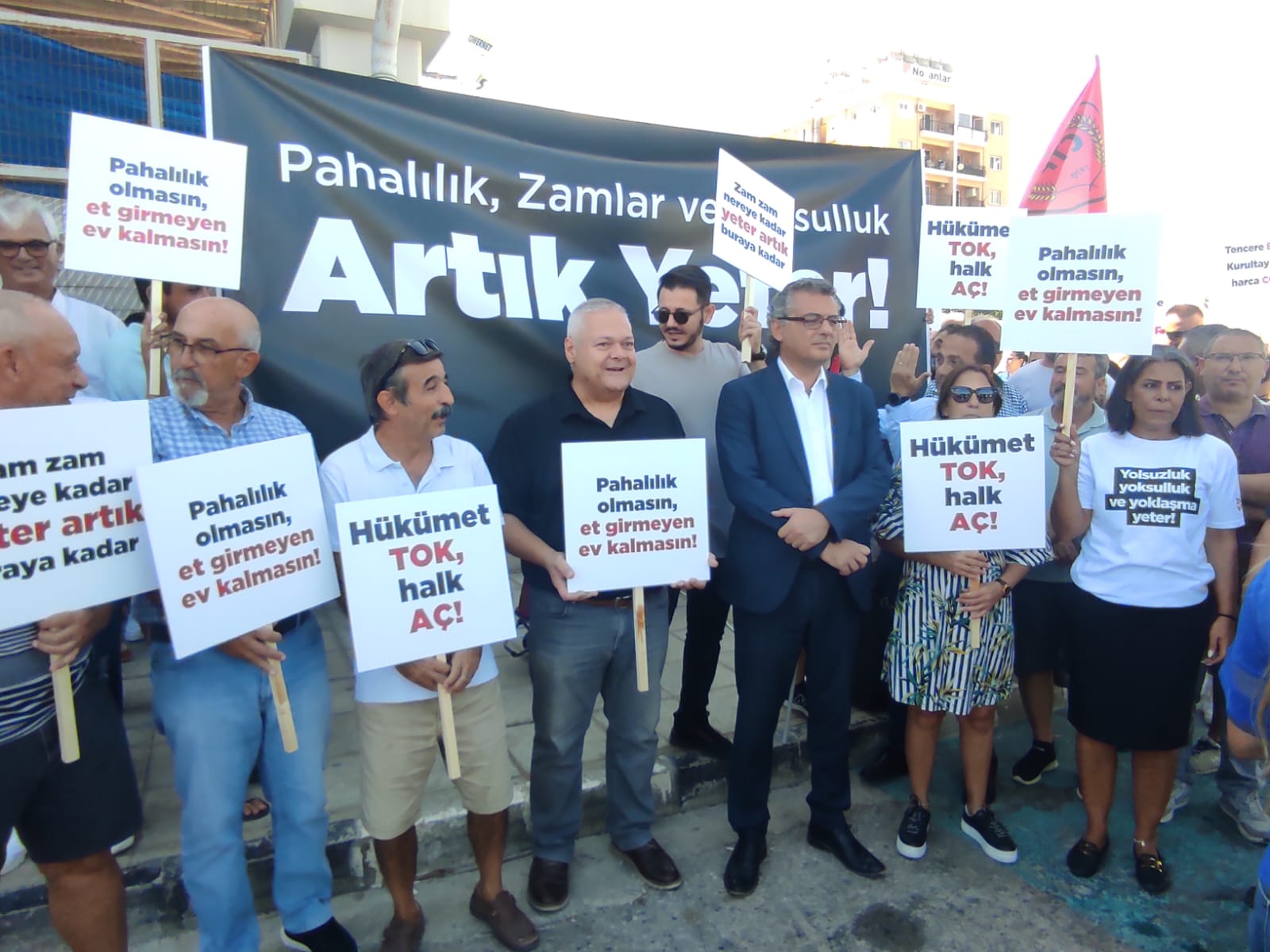 Eylemde, “Halk yoksul, hükümet edenler zengin”, “Pahalılık, zamlar ve yoksulluk yeter” “Pahalılık olmasın, et girmeyen ev kalmasın”, “Hükümet tok, halk aç”, “Tencere boş, kurultay için harca coş” gibi dövizler taşındı.