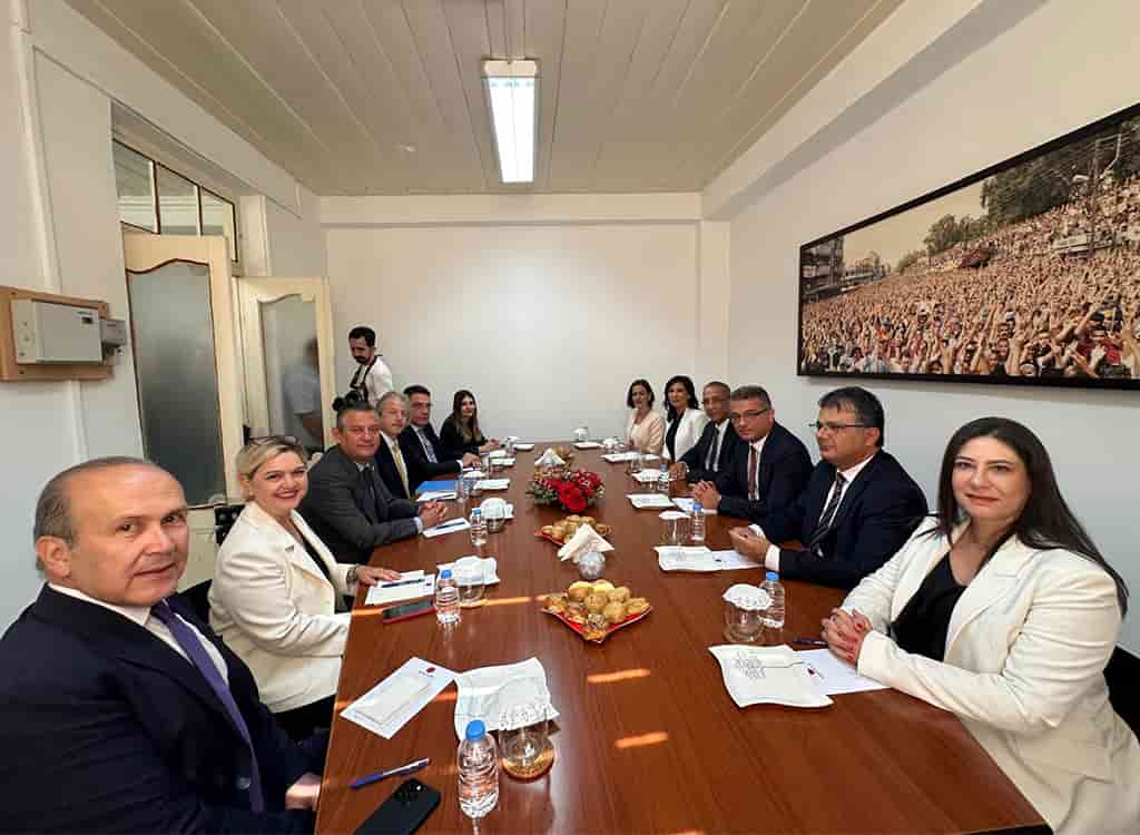 Cumhuriyetçi Türk Partisi (CTP) Genel Başkanı Tufan Erhürman, Cumhuriyet Halk Partisi (CHP) Genel Başkanı Özgür Özel ve beraberindeki heyeti bugün parti genel merkezinde kabul etti. Erhürman’a kabulde, Genel Sekreter Asım Akansoy ve MYK Üyeleri Fikri Toros, Sıla Usar İncirli, Doğuş Derya ve Fazilet Özdenefe de eşlik etti. Görüşme sonrası parti liderleri ortak basın toplantısı gerçekleştirdi. CTP Genel Başkanı Tufan Erhürman basın toplantısında, Kıbrıs Türk halkının varoluş mücadelesinin devam ettiğine dikkat çekerek, “CTP, Kıbrıs sorununun çözümüyle ilgili tek gerçekçi yolun, iki toplumlu, iki bölgeli, siyasi eşitliğe dayalı federal çözüm olduğu bilgisiyle hareket ediyor. Bu bilgiye sahip olan parti olarak geçmiş tecrübelerden de dersler çıkarıyor” diye konuştu. CHP Genel Başkanı Özgür Özel ise yaptığı konuşmada, Kıbrıs’ta birçok sorununun bulunduğuna vurgu yaptı. Özel, yarından itibaren temiz bir sayfa açılması çağrısında da bulundu.