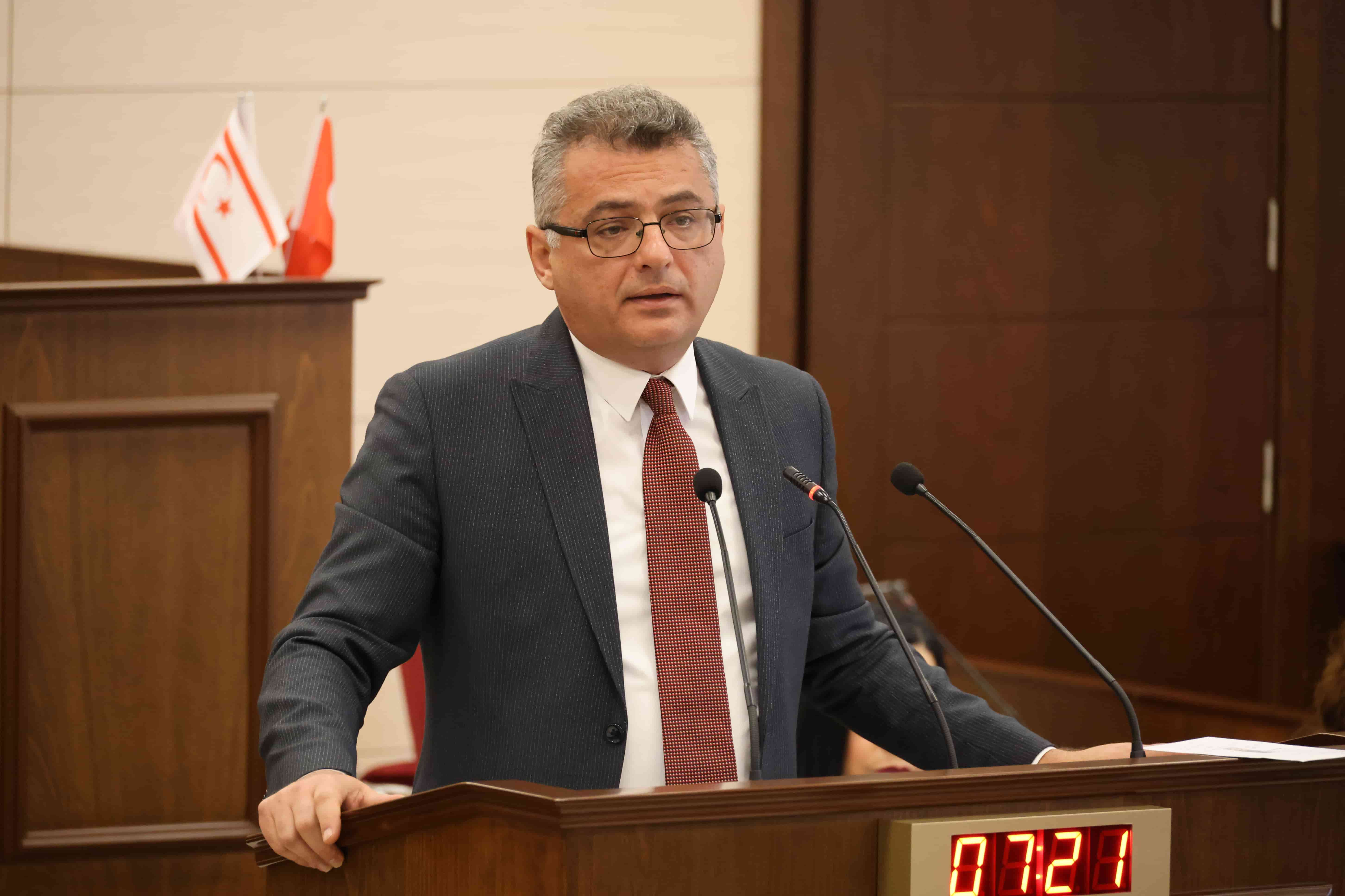 Yabancılara mülk satışıyla ilgili geçen yasadan da bahseden Erhürman, konunun Meclis’te aylarca konuşulduğunu hatırlattı. Geçirilen yasayı, “Dağ fare doğurdu” diye niteleyen Erhürman, yasaya neden kaştı çıktıklarını defalarca dile getirdiklerinin altını çizdi. Tufan Erhürman, “Yasa size diyor ki; bakanlar kurulu tarafından yatırım amaçlı satın alma izni verilmesi için Devlet Planlama Örgütü’nün (DPÖ) yayınladığı kalkınma planı çerçevesinde olması ve yap-sat hariç turizm, eğitim, arge gibi alanlarda olması gerekir. İlgili tüzel ya da gerçek kişi, şirketinin hesabına 20 milyon euro yatırmak zorundadır. Bu yasa 21 Mayıs 2024’te yürürlüğe girdi. Yasanın yürürlüğe girdiği tarihten itibaren yatırım amaçlı biri gelirse, DPÖ’nün kalkınma planına uygun mu diye bakılması gerekir. 20 milyon da bankaya yatırılmalıdır. Siz oturdunuz, tam 21 Mayıs günü bir bakanlar kurulu kararı aldınız. Bir şirkete 11 dönüm 2 evlek taşınmaz malı, 3 milyon Euro ile satın alma izni verdiniz. Yasa yürürlüğe girdi, aynı gün karar aldınız ve aynı gün aldığınız karar yasaya uymuyor. Bu kararınız resmi gazetede 22 Mayıs’ta yayınlanıyor. 22 Mayıs’ta yayınlandığına göre karar 22 Mayıs’ta yürürlüğe giriyor. 21 Mayıs’ta yürürlüğe giren bir yasaya aykırı bir şekilde bakanlar kurulu kararını yürürlüğe soktunuz. Bu anlatılabilir bir şey de değildir” dedi. Söz konusu yasanın iş ola yapıldığına işaret eden Erhürman, “Onu bile beceremediniz. Aynı gün yasaya aykırı karar geçirdiniz. Ciddiyetsizliğin dibine vurdunuz. Yaptığınız işi, yüzünüze gözünüze bulaştırdınız” diye konuştu.
