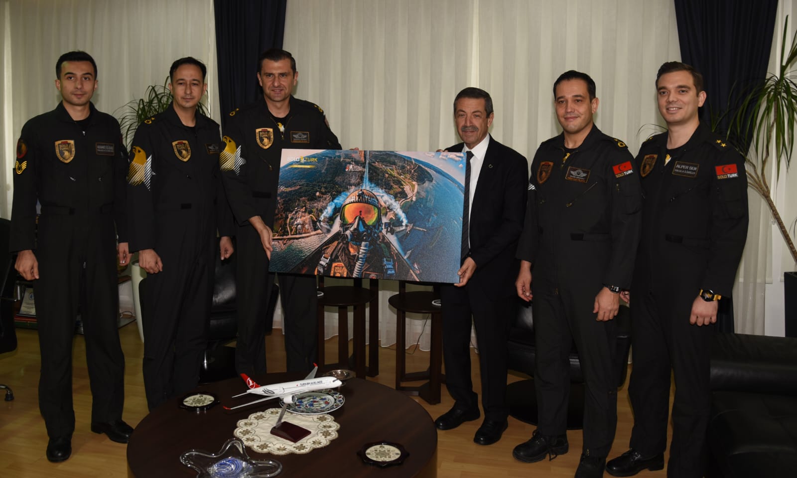Dışişleri Bakanı Tahsin Ertuğruloğlu, 15 Kasım Cumhuriyet Bayramı kutlama etkinlikleri kapsamında gösteri uçuşu yapmak üzere KKTC’ye gelen SOLOTÜRK pilotlarını kabul etti.