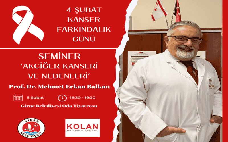 Kanser Farkındalık Günü nedeniyle düzenlenecek “Akciğer Kanseri ve Nedenleri” konulu seminer Girne Belediyesi Oda Tiyatrosu’nda yer alacak. Seminer 18.30 ile 19.30 saatleri arasında olacak.