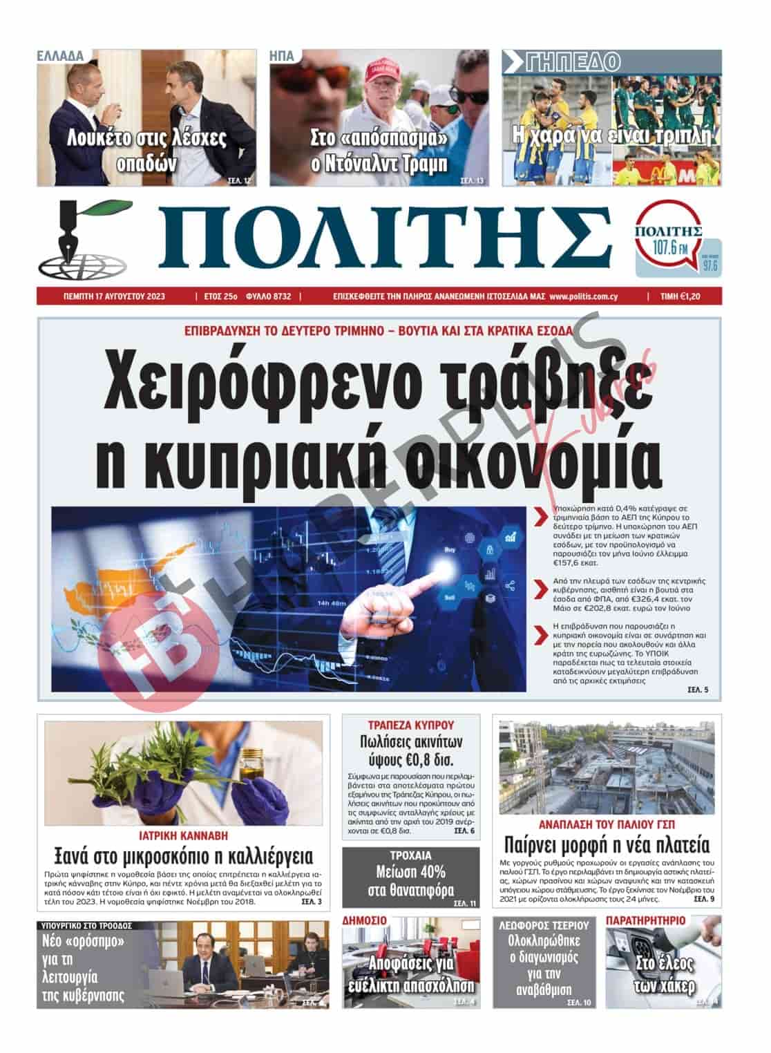 POLİTİS, bugünkü manşet haberinde, “Kıbrıs Rum ekonomisi el frenini çekti” başlığını kullandı ve bu yılın ikinci üç aylık döneminde ekonomik büyüme anlamında geriye gidildiğini ve üç aylık bazda gayri safi yurtiçi hasılada %0.4’lük bir düşüş yaşandığını bildiriyor.