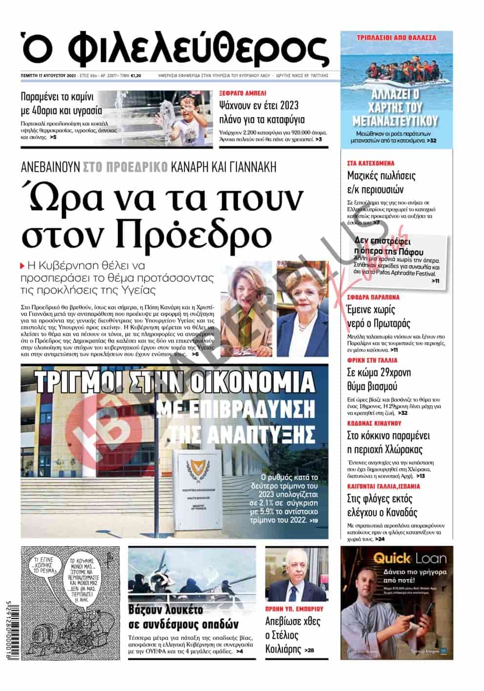 ΗARAVGİ, bugünkü manşet haberinde, “Yaptırımlar Güney Kıbrıs’a çok ağır geldi” başlığını kullandı ve Güney Kıbrıs’ta bu yılın ikinci çeyreğinde ekonomideki büyüme oranının%0.4 olarak kaydedildiğini yazdı.
