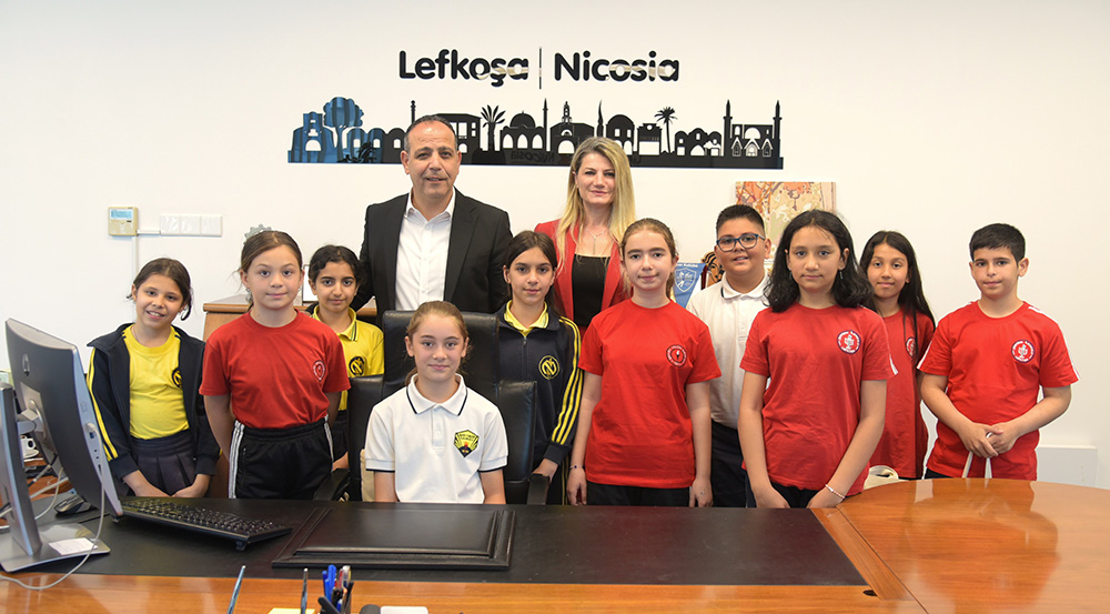 Belediyeden yapılan açıklamaya göre, Özle Işıman yönetimindeki Lefkoşa’nın farklı okullarından ziyarete gelen öğrencilerden Şehit Tuncer İlkokulu 5. sınıf öğrencisi Yağmur Bozat başkan koltuğuna oturdu. .