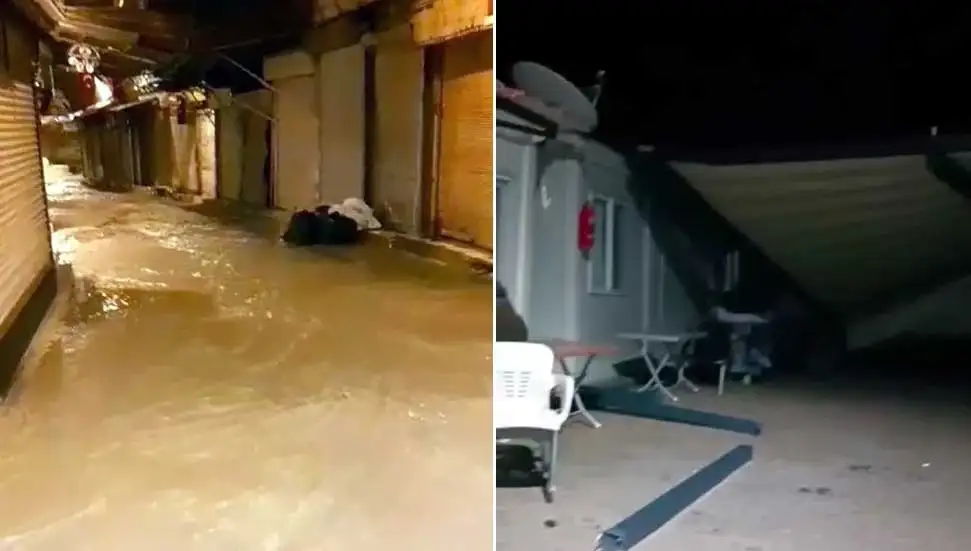 Hatay’da etkili olan sağanak yağış ve fırtına nedeniyle bazı binaların çatıları uçarken, konteyner kentlerde ise su baskınları yaşandı.