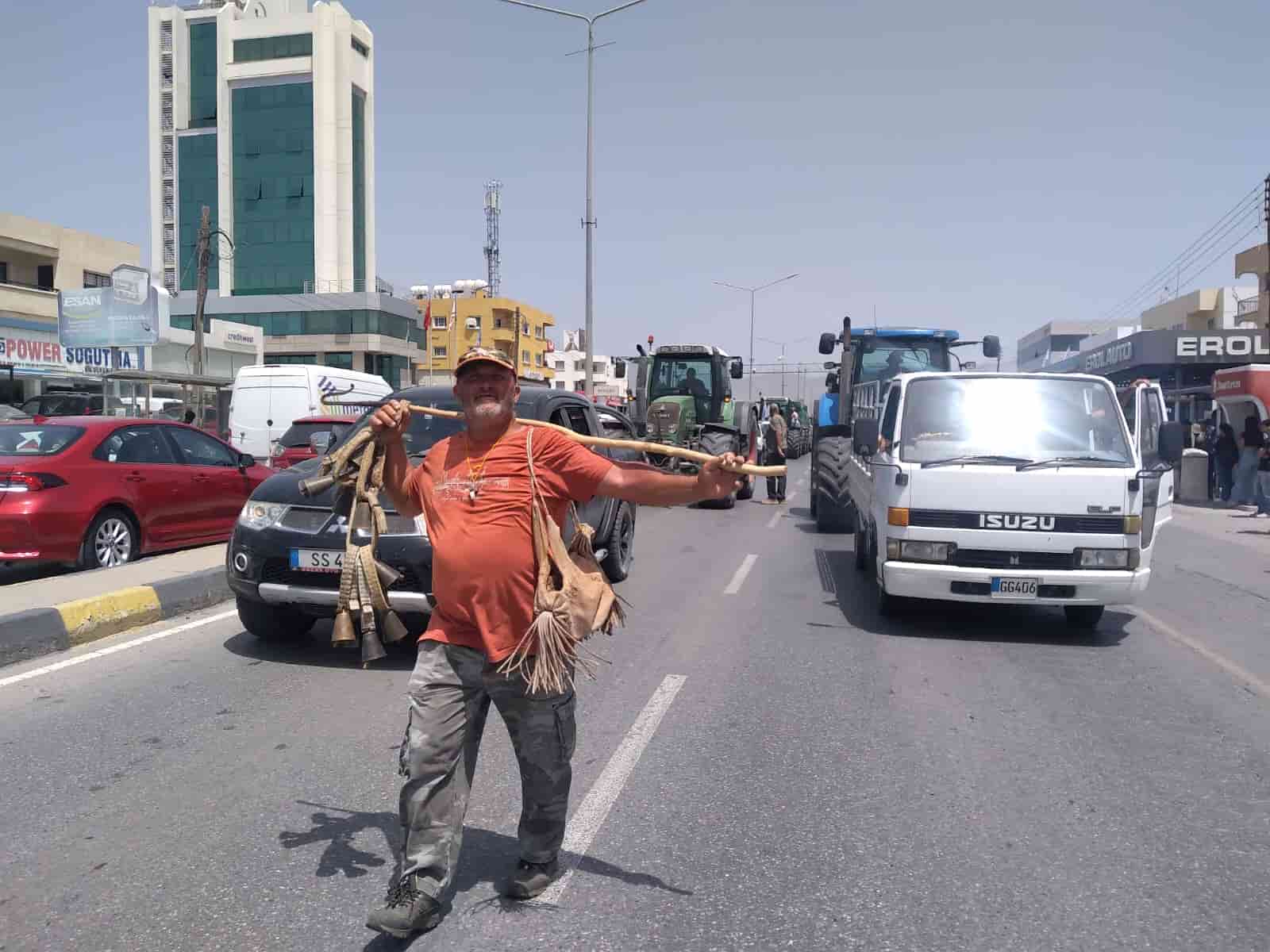 Hayvan üreticileri, hükümetin hayvancılık politikalarını protesto etmek için Lefkoşa’da araçlı eylem yapıyor.