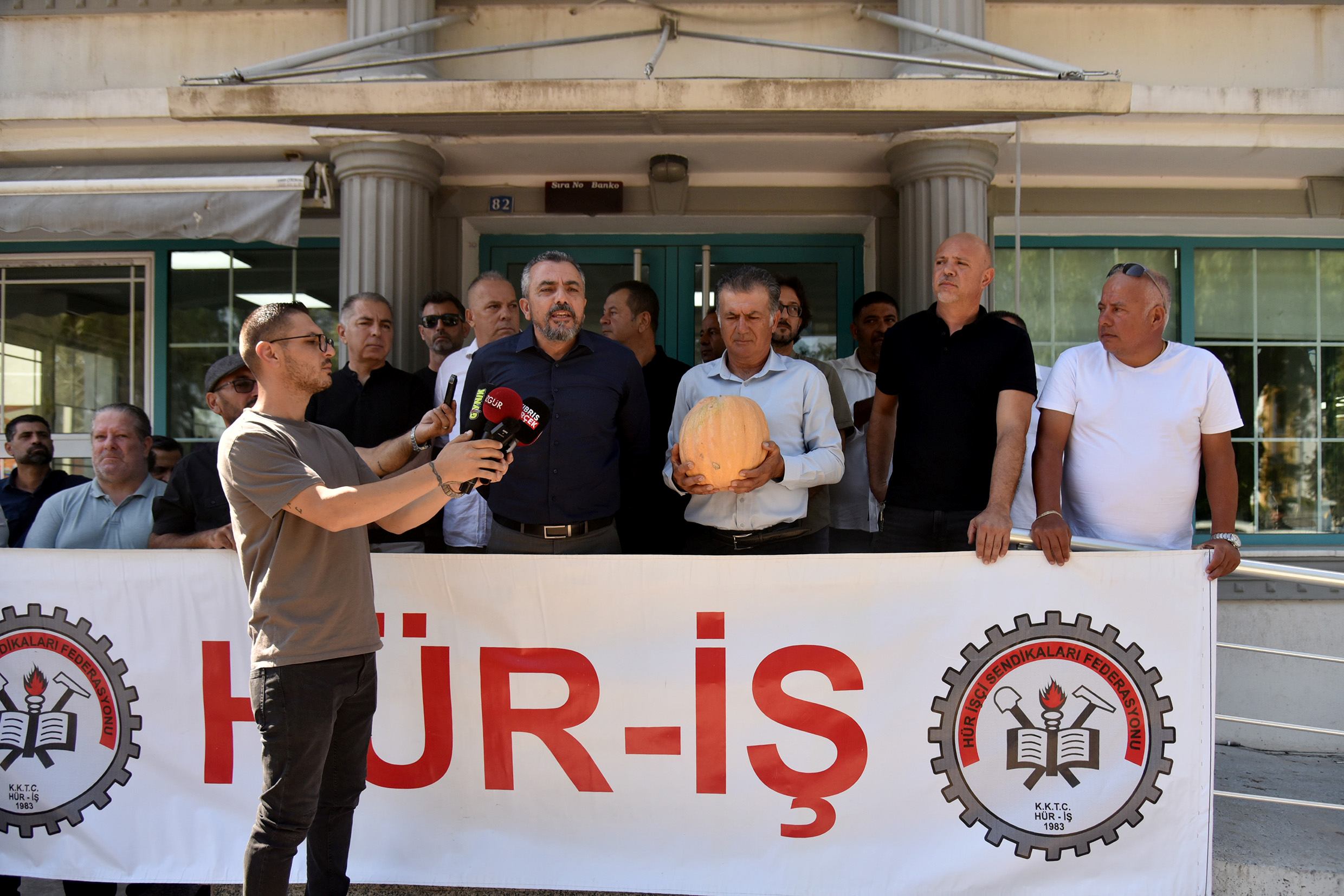 Bakanlık önünde toplanan Hür-İş Genel Başkanı Ahmet Serdaroğlu, Yönetim Kurulu üyeleri ve temsilcileri, yanlarında Çalışma ve Sosyal Güvenlik Bakanı Sadık Gardiyanoğlu’na verilmek üzere bir de “kabak” getirdiler ve bina kapısına bıraktılar.