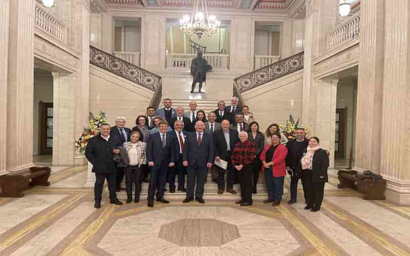 Katılımcılar, Kuzey İrlanda Meclis Başkanı Alex Maskey tarafından karşılandı ve Belfast/Good Friday Anlaşmasının uygulanmasına ilişkin konuları değerlendirdi.