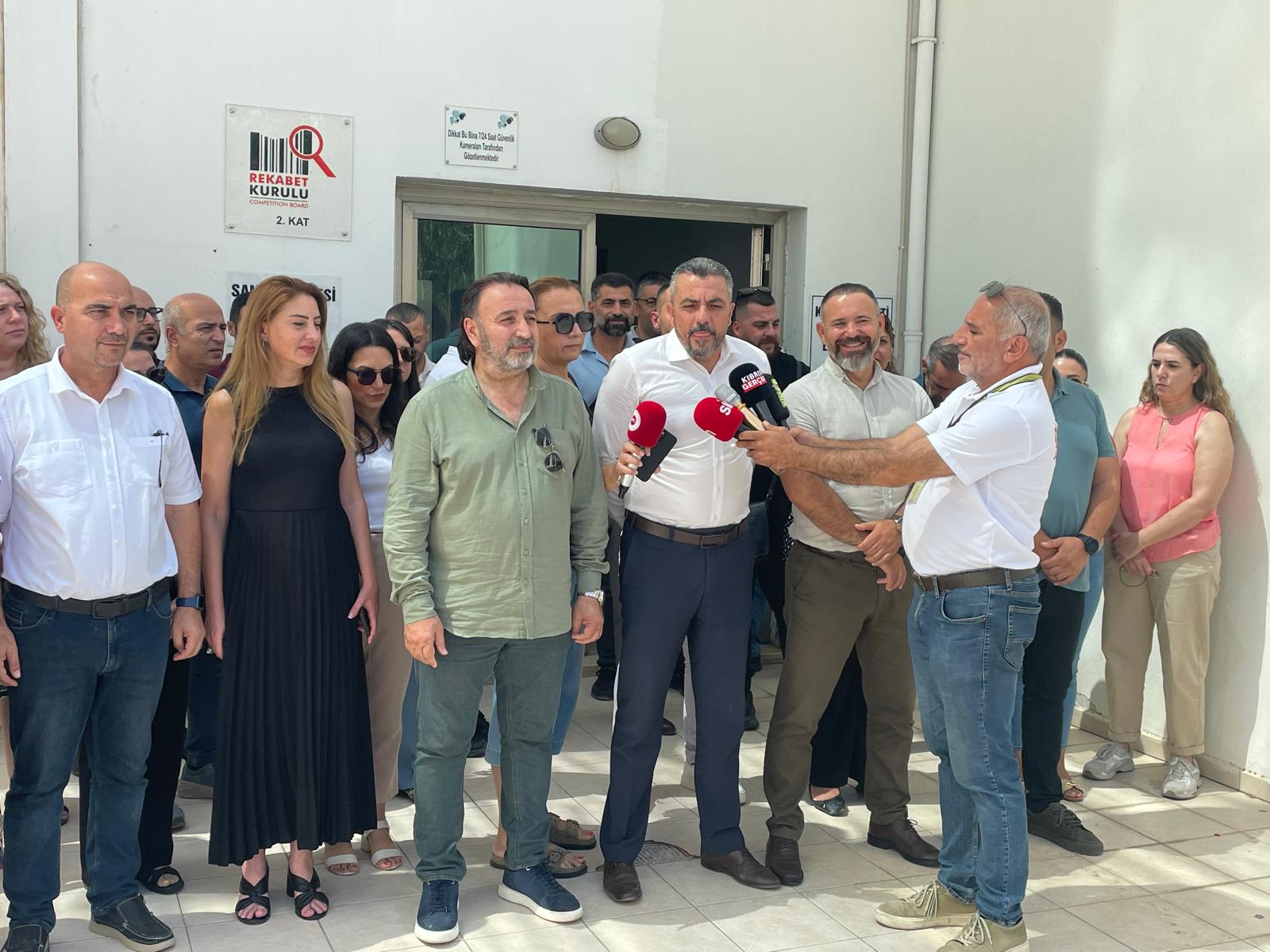 Eylemde, Kamu İşçileri Sendikası (Kamu-İş) Başkanı Ahmet Serdaroğlu, Kıbrıs Türk Kamu Görevlileri Sendikası (KAMUSEN) Başkanı Metin Atan ve Kıbrıs Türk Amme Memurları Sendikası (KTAMS) Başkanı Güven Bengihan basına açıklamada bulundu.