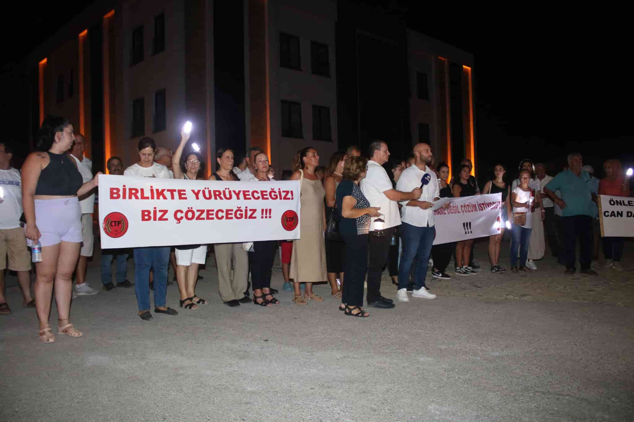 “Yıllardır karanlık yollara mahkum edilen Güzelyurtlu, bu karanlık yollarda yaralanmaya ve can vermeye devam ediyor. Ülkeyi yönettiğini iddia eden zihniyet, her sektörü sorunlar yumağına soktuğu gibi trafiği de kaosa sürüklemiştir. Bu zihniyetin, güvensiz yollarda seyahat etmemizle ilgili hiçbir rahatsızlığı yoktur. Eğer rahatsız olsalardı, yeni yaptıkları belediye binasının önünü aydınlattıkları gibi, Güzelyurt ve köylerinin en kritik noktalarını da aydınlatırlardı. Halkın, öğrencilerin ve işçilerin en yoğun olduğu bölgeler; Akçay, Bostancı/Kalkanlı, Güzelyurt/Güneşköy, Aydınköy/Eski Güzelyurt, Lefke yolu bölgesi ve biraz önce yürüyüş yaptığımız çevre yolu gibi yerlerdir. Ancak bunu yapmadıkları gibi, ortaya bir plan ya da çözüm önerisi de koymuyorlar. Çünkü dertleri ülkenin yönetilmesi değil; gayeleri memleket değil, insan hayatı hiç değil! Bu nedenle istikrarlı bir şekilde karanlığa yürüyoruz, karanlıklarda seyahat ediyoruz. Sorduğumuz zaman, belediye ve ülkeyi yönettiğini iddia edenler topu birbirlerine atıyor. Onların yetki karmaşaları bizi ilgilendirmez. Biz çözüm istiyoruz. Ama biliyoruz ki, ölü gözünden yaş beklenmez. O nedenle biz çözeceğiz diyoruz. Sizin kaosa soktuğunuz her alanı halkımızla birlikte yürüyerek, el ele vererek, omuz omuza vererek, Kıbrıs Türk halkını daha refah bir döneme taşıyacağız diyoruz. Bugün gerçekleştirdiğimiz eylemde de bir kez daha bunun altını çizmek istedik. Biz bu karanlık yolları hak etmiyoruz. Bu karanlıklarda seyahat etmek istemiyoruz. Siz ise yönetemiyorsunuz, beceremiyorsunuz ve bu karanlığı aydınlatamıyorsunuz. Oturduğunuz koltuklardan kalkın ve gidin. Biz çözeceğiz. Karanlıkları aydınlığa biz çevireceğiz.”
