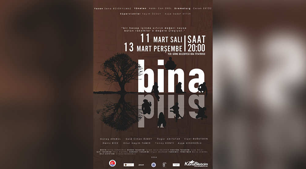 Grift Tiyatro oyuncuları ile yerel oyuncular tarafından Girne Belediyesi iş birliğinde sahnelenecek “Bina” isimli tiyatro oyunu, 11 Mart Salı ve…