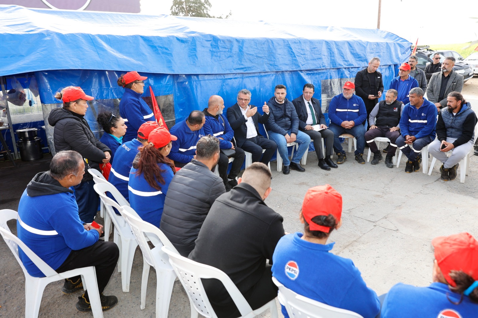 Erhürman, grevdeki Ektam Kıbrıs Ltd. çalışanlarını ziyaret etti