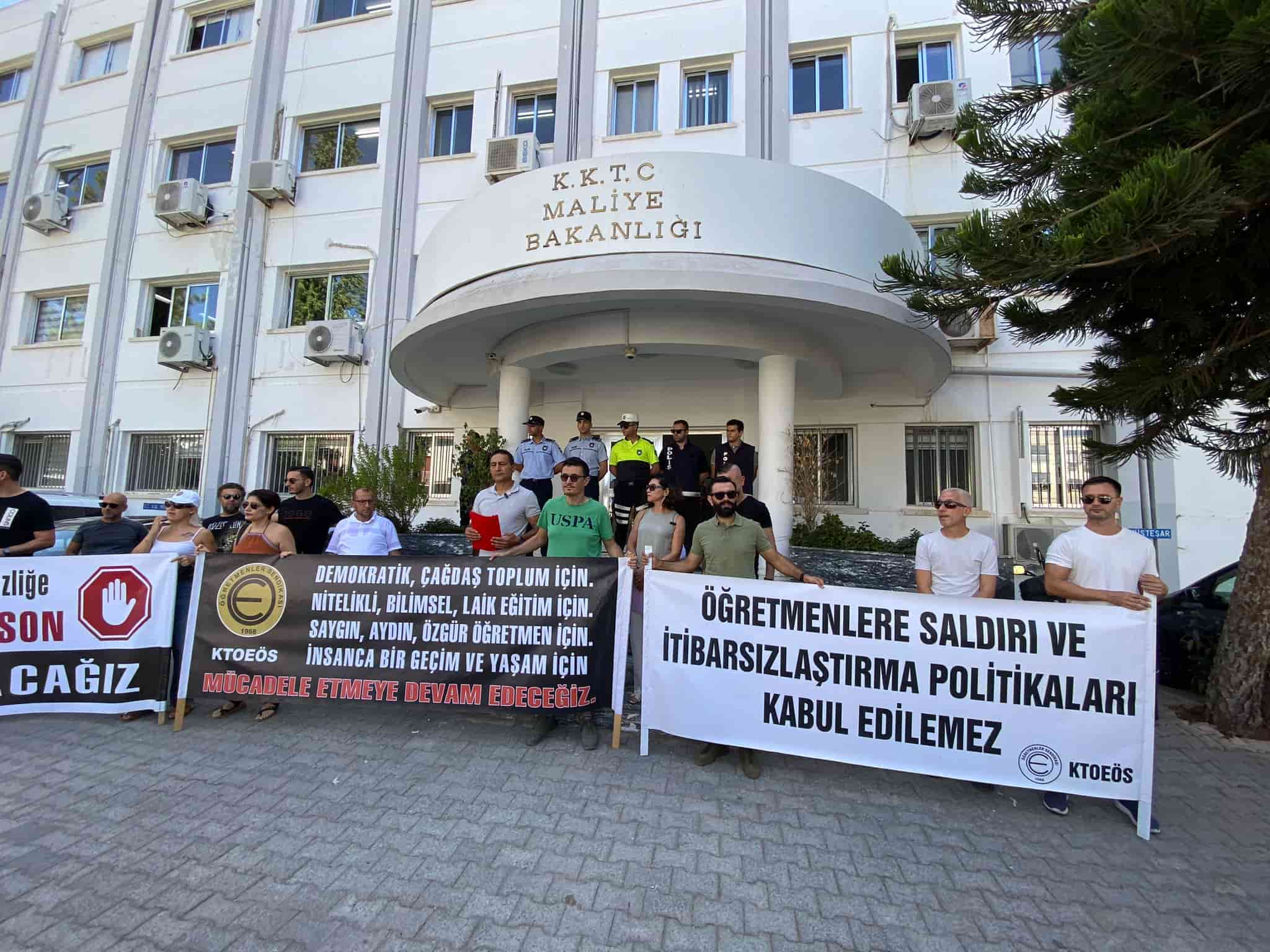 Kıbrıs Türk Orta Eğitim Öğretmenler Sendikası (KTOEÖS), özellikle 2008’den sonra atanan öğretmenlerin ekonomik, sosyal, emeklilik ve çalışma koşullarıyla ilgili yaşanan sorunlara çözüm bulunmasını talep etmek için Maliye Bakanlığı önünde eylem yaptı.