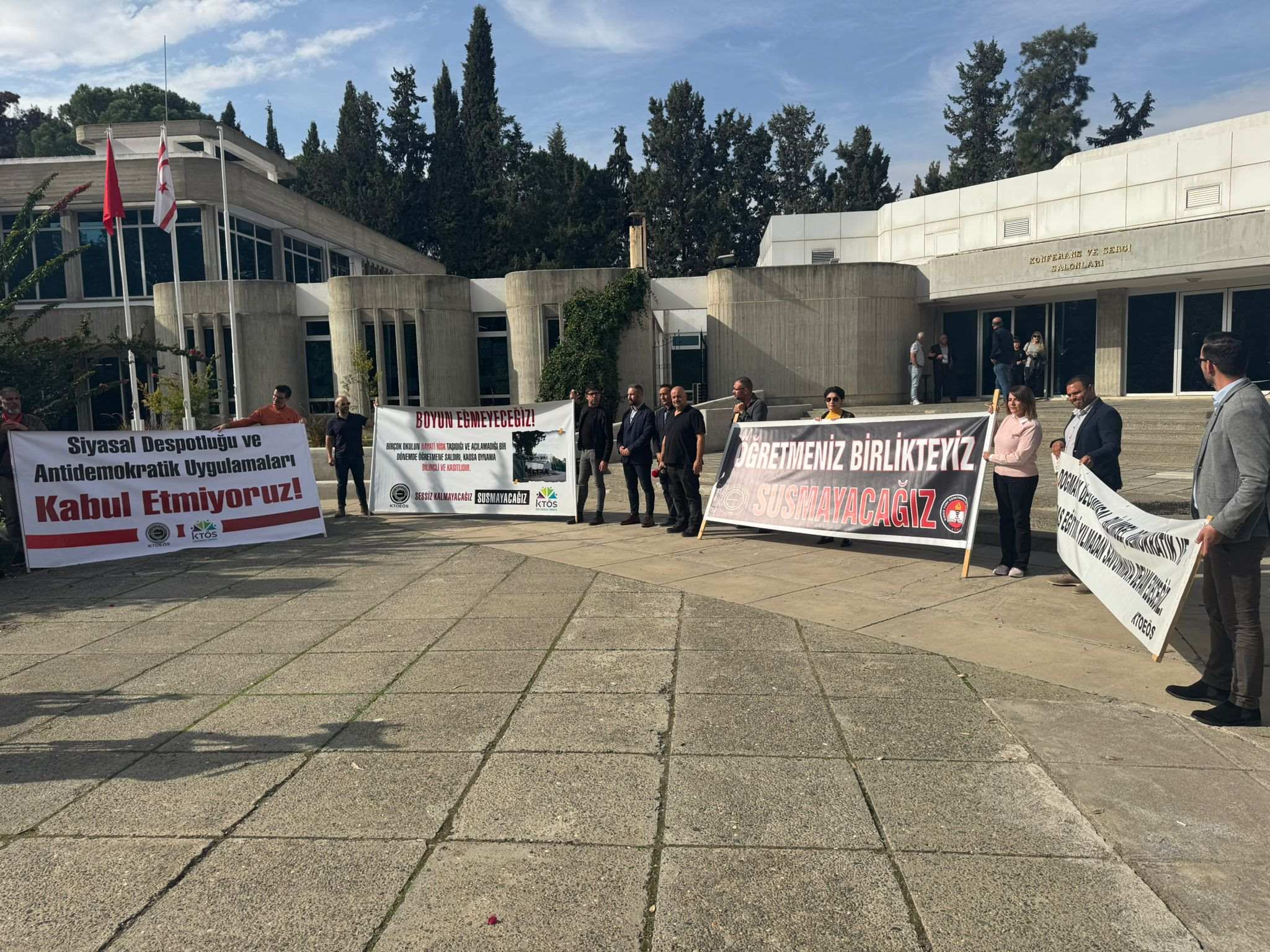 Kıbrıs Türk Orta Eğitim Öğretmenler Sendikası (KTOEÖS) ve Kıbrıs Türk Öğretmenler Sendikası (KTÖS), bu sabah Lefkoşa Atatürk Kültür Merkezi önünde eylem ve basın açıklaması yaptı.