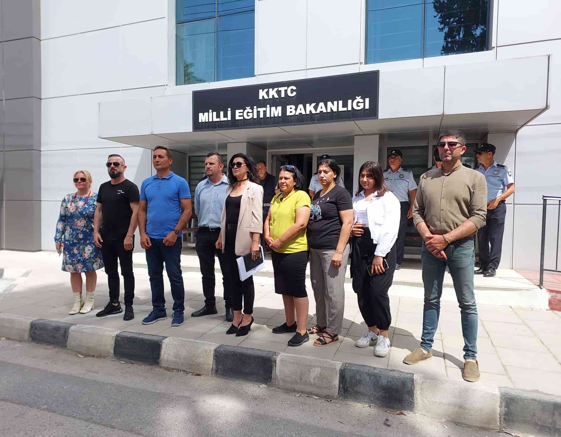 Kıbrıs Türk Orta Eğitim Öğretmenler Sendikası (KTOEÖS), Meral -Vedat Ertüngü Lisesi’nden bir grup veliyle birlikte Milli Eğitim Bakanlığı önünde basın açıklaması yaparak, öğrencilerin yaşadığı sorunları aktardı.