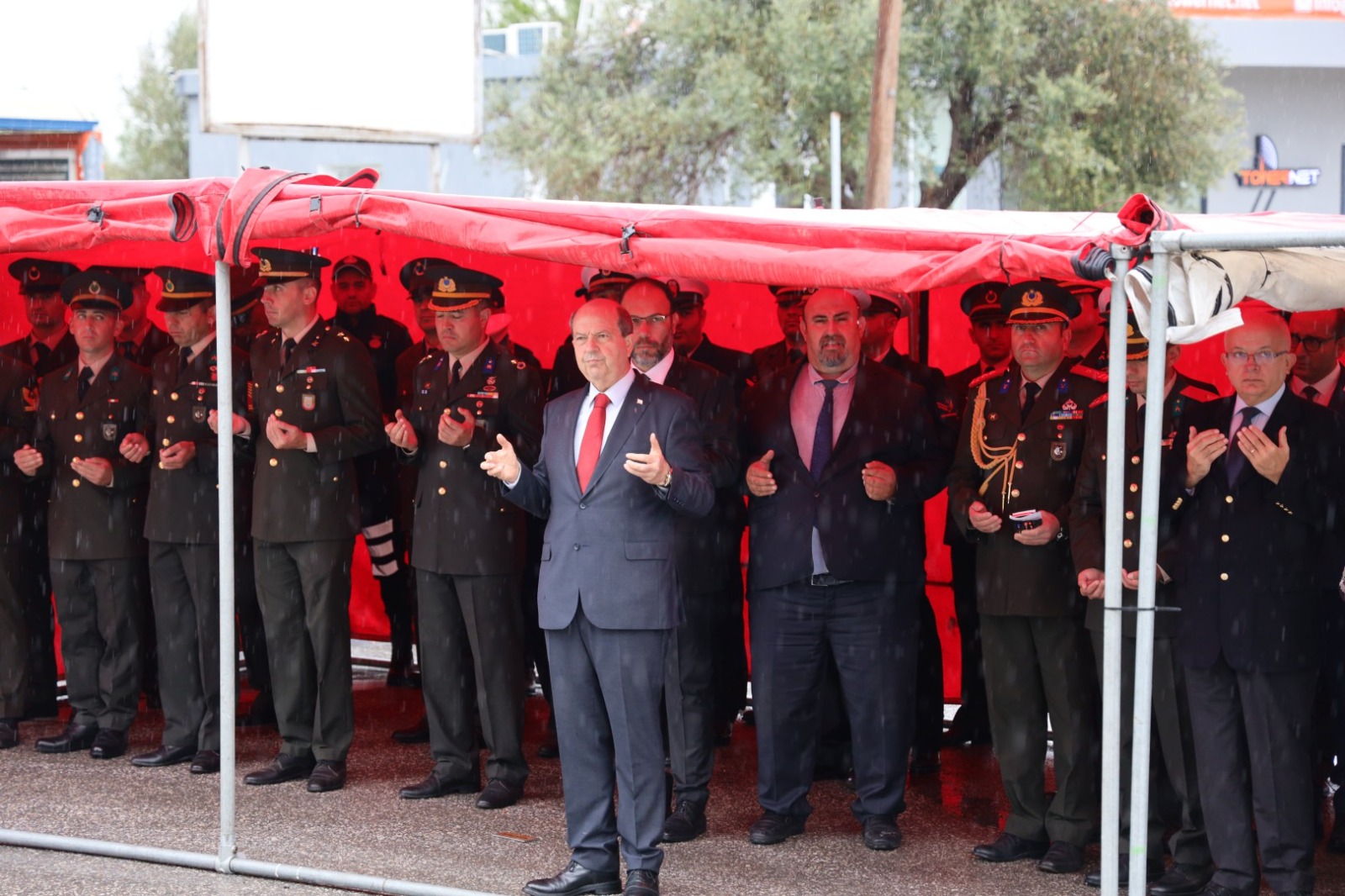 Cumhurbaşkanı Ersin Tatar, da konuşmasının başında tüm şehitleri rahmet ve minnetle anarak gazilere şükran sundu. Tatar, vefa gereği şehitleri anarken, şehitlere duydukları minnet ve saygıyı şehit ailelerinin huzurunda ifade etmeyi bir sorumluluk olarak gördüklerini söyledi.