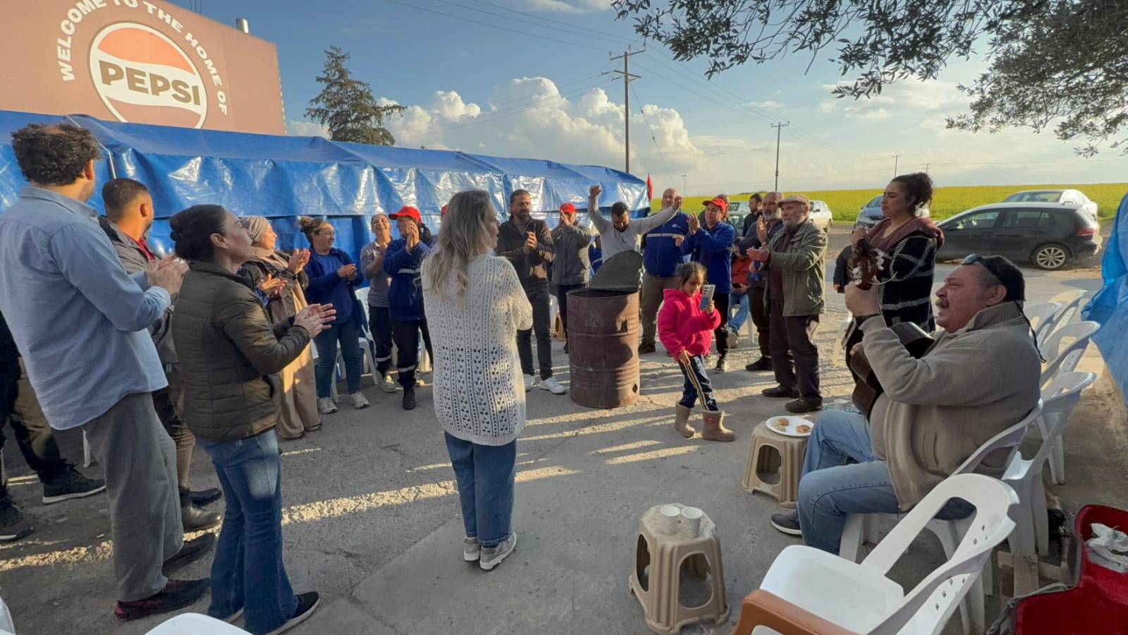 Lefkoşa Belediye Tiyatrosu sanatçıları, 20 gündür emek ve sendikalaşma mücadelesi veren EKTAM işçilerine dayanışma göstermek amacıyla grev çadırında etkinlik düzenledi.