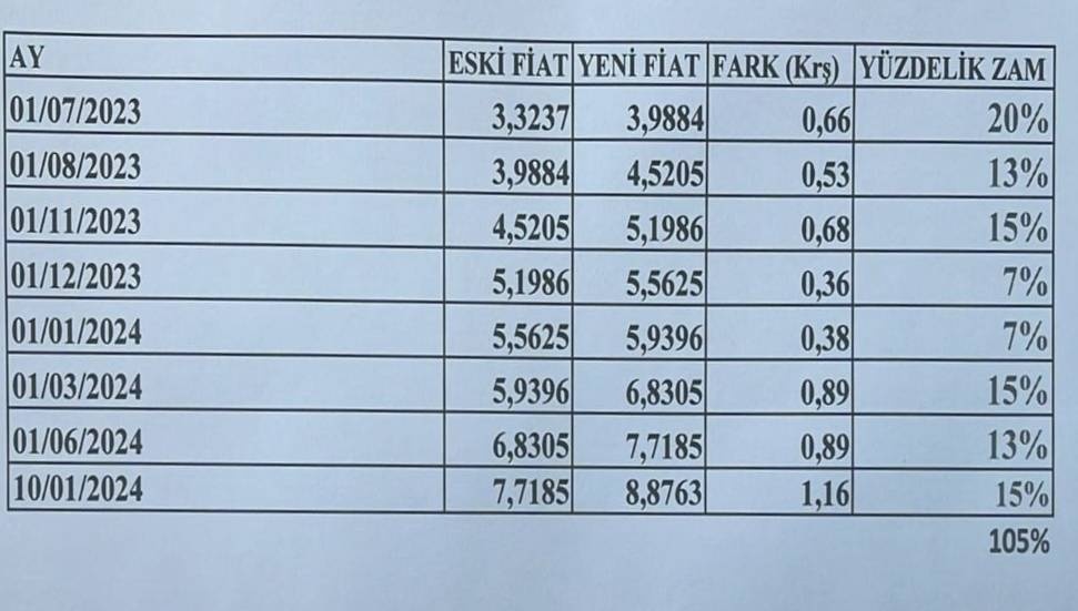 Geçtiğimiz 14 aylık süre zarfında elektriğe min %105 zam yapılmıştır